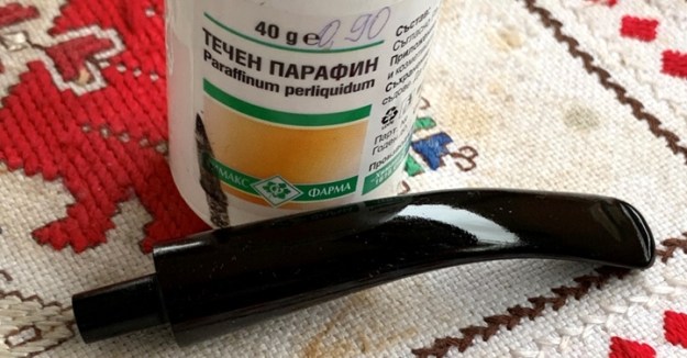 To help condition the vulcanite stem, paraffin oil is applied with a cotton pad. Paraffin Oil is a mineral oil. I then put the stem aside to give time for the oil to be absorbed.