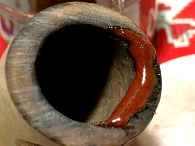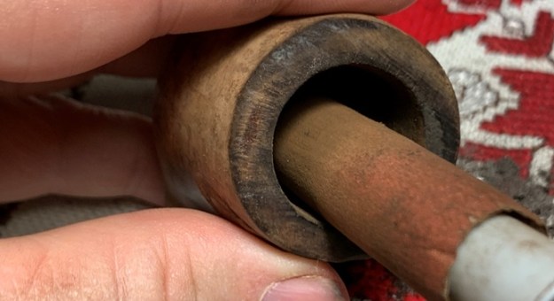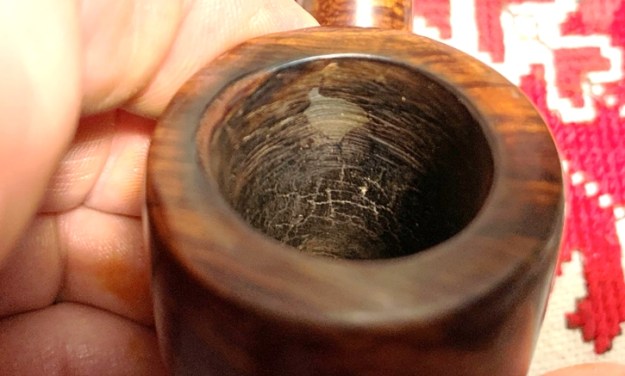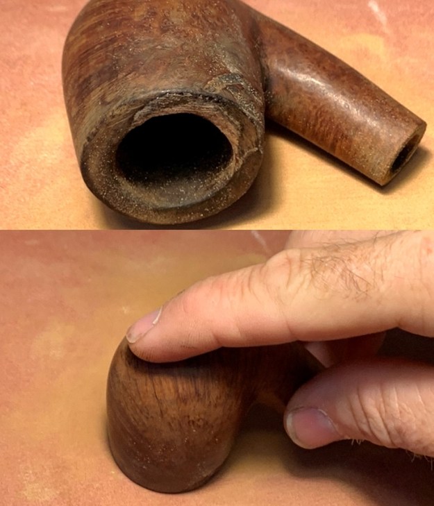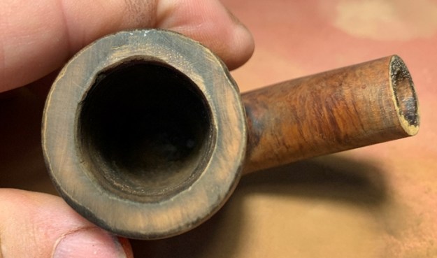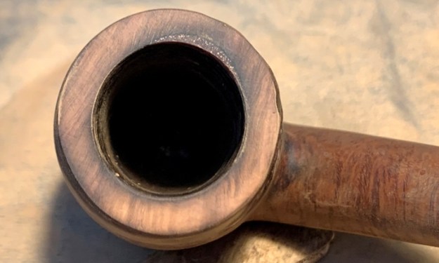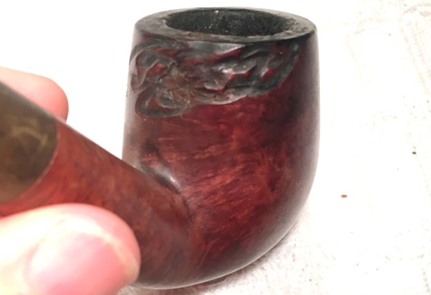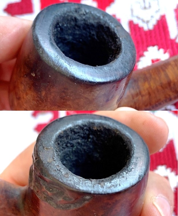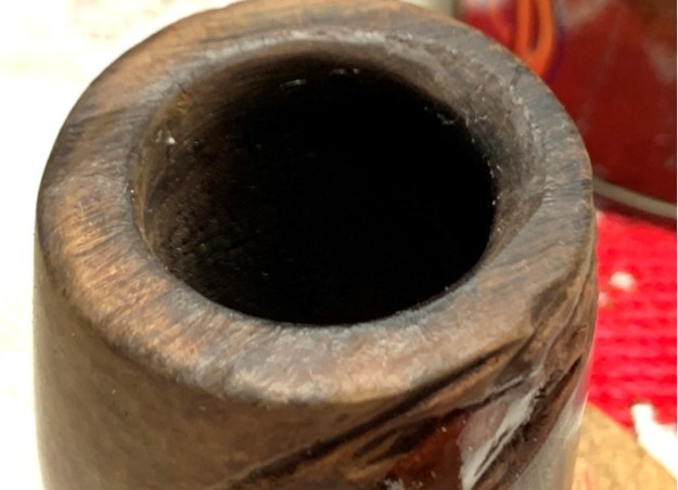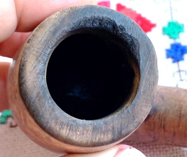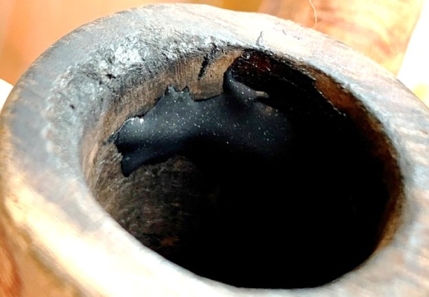 The rim is in rough shape with thick lava flow and nicks and skinned edges – it’s been a well-used pipe!