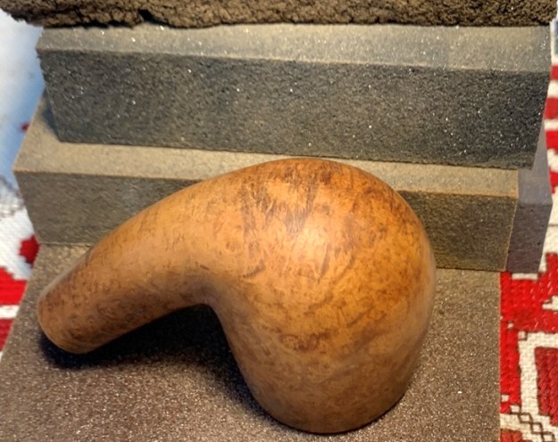 After changing the topping board to 600 grade paper, the stummel is rotated several more times. I like what I see. The rim rebuild patch looks good and the rim’s balance has been restored without great loss of briar off the top of the bowl.