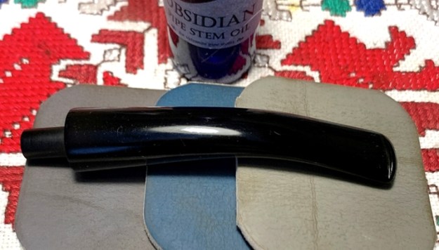 With the stummel resting, I turn again to the stem. I apply the full regiment of micromesh pads by wet sanding with pads 1500 to 2400 and dry sanding with pads 3200 to 4000 and 6000 to 12000. Between each set of 3 pads, Obsidian Oil is applied to help condition the stem and to protect from oxidation.