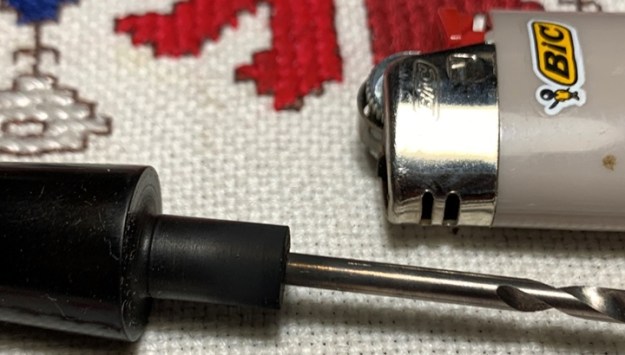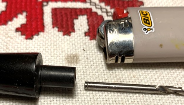I had observed earlier that the stem was loose. There is too much play with the mortise fitting. To remedy this, I use the smooth end of a drill bit, one-step larger than the airway diameter.
