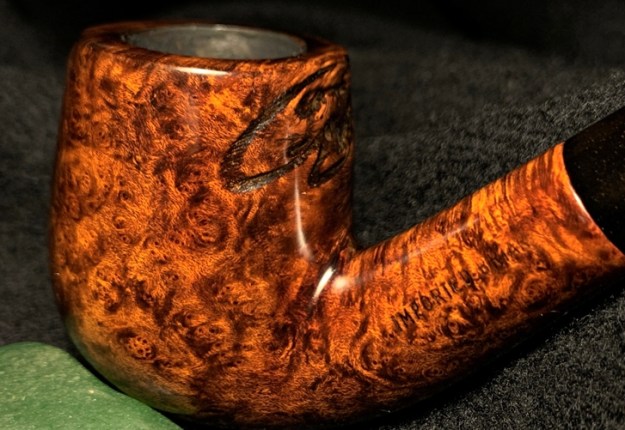 Wow! This Sculpted 3/4 Bent Billiard had some issues to work through. The hole repair and the rim were the largest challenges and I’m pleased with how these repairs turned out. The briar grain is fun and expressive and really made an appearance through the dying and buffing process. I’m pleased and I trust that my future daughter-in-law, Katie, will be pleased as well as she gives this pipe to her father as a gift for his birthday. What makes this gift even more valuable is that this pipe benefits the Daughters of Bulgaria – women and girls who have been trafficked and sexually exploited. Thanks for joining me!