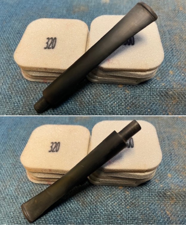 I removed the stem from the shank and sanded it with 220 grit sandpaper to adjust the fit to the shank. By the time I was finished sanding it the stem very well to the shank and the transition was smooth.