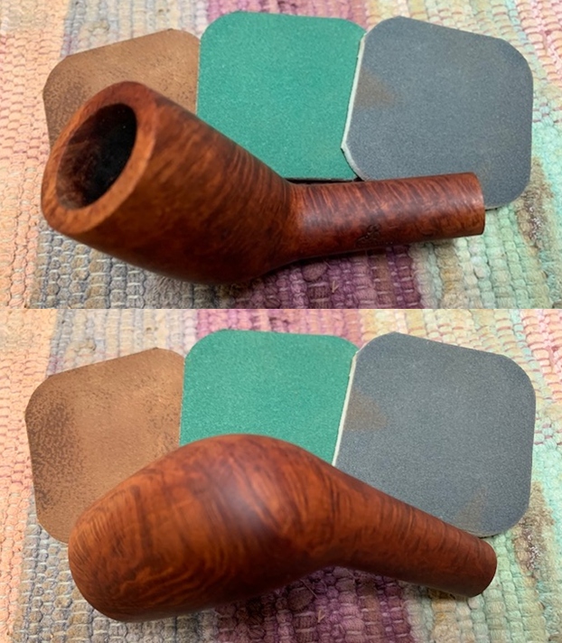 I sanded the bowl, rim top and shank with sanding pads – 320-3500 grit pads. I wiped the bowl down after each sanding pad to remove grime and check the progress. It was looking very good by the time I finished with the final pad.