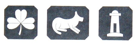 Nickel-Mount Markings. Often called faux hallmarks or faux marks by Peterson collectors, this set of three little images of a shamrock, an Irish wolfhound and a round tower appear within rectangular shapes as decorations on nickel mountings. Very early nickel mounts (1891-c. 1920) had no such decorations, only the same stamps used on sterling but without the hallmarks. As a stamp, the set of decorations began to appear at the beginning of the Irish Free State era, sometimes alone but often under K&P and over block lettered PETERSON over DUBLIN, although the three emblems appeared on K&P’s Irish Carving Shamrocks pipes since 1896. The stamp was used until about 1963, when hand soldered nickel bands and ferrules were replaced by pressed ferrules and premade bands…The shamrock is the emblem of Ireland; the Irish wolfhound has long been used for both hunting and protection, and is an emblem of strength; the round tower a symbol of Ireland’s early religious power. These decorations were stamped at the factory on non-sterling mounts only, and the assay office has nothing to do with them…