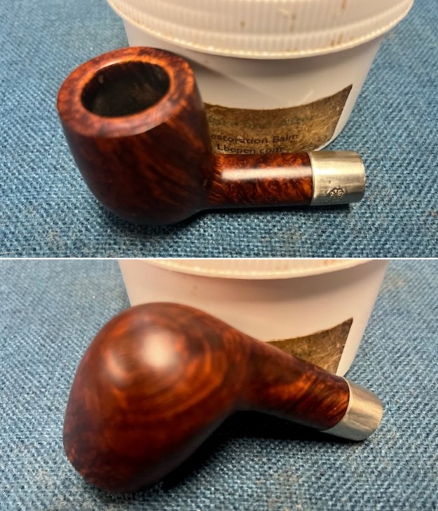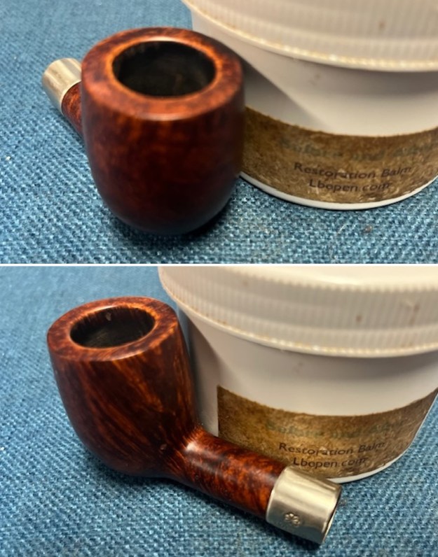 I worked some Before & After Restoration Balm into the surface of the briar with my fingertips to clean, enliven and protect the briar. I let the balm sit for 15 minutes and then buffed with a cotton cloth to raise the shine. The photos show the bowl at this point in the restoration process.