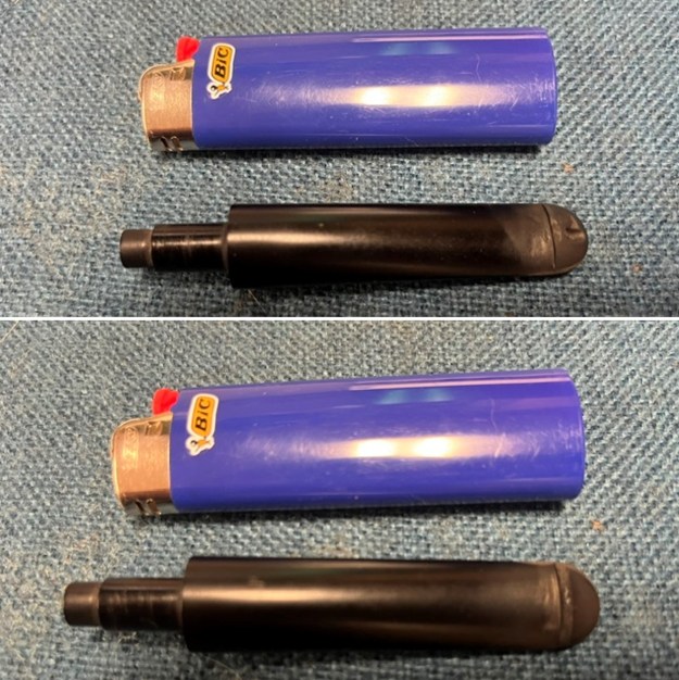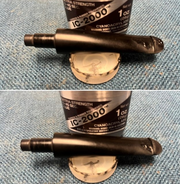 I set the bowl aside and turned to the stem. I “painted” the stem surface with the flame of a lighter to lift the tooth marks. I was able to lift some of them. I filled in the remaining marks in the surface with extra strength, rubberized CA glue. I set it aside to cure. I sanded the marks smooth with a folded piece of 220 grit sandpaper.