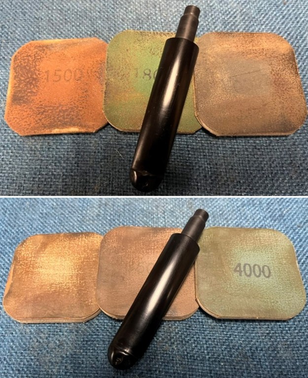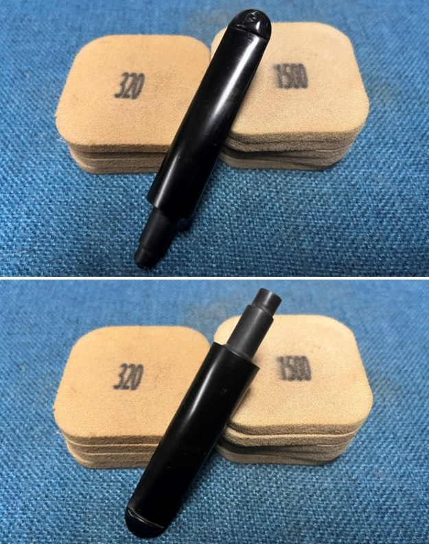I sanded the stem with 320-3500 grit sanding pads to further blend the repairs into the stem. I wiped the stem down after each pad with an Obsidian Oil cloth. It began to look much better.