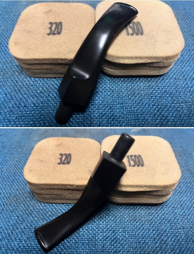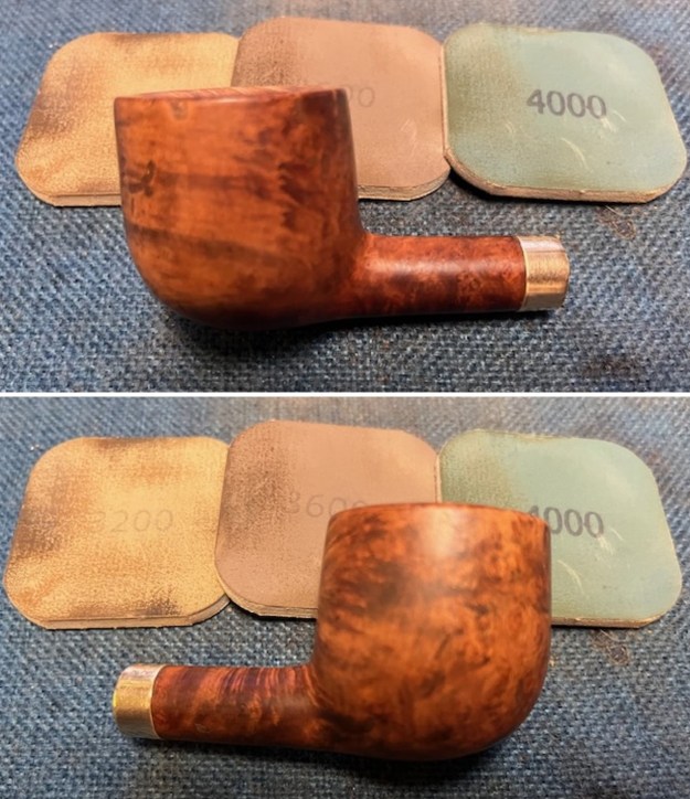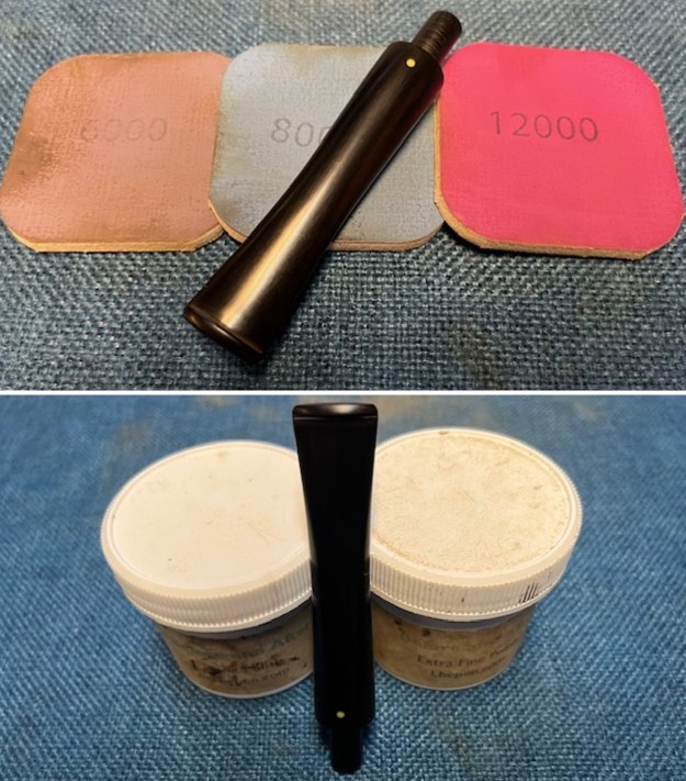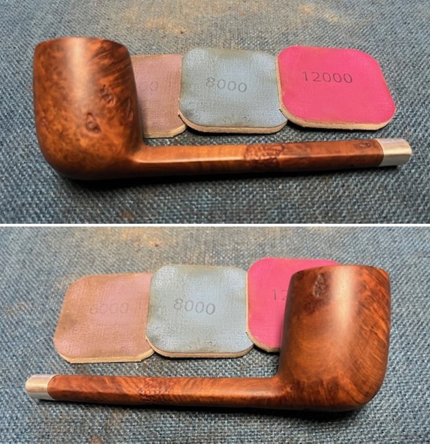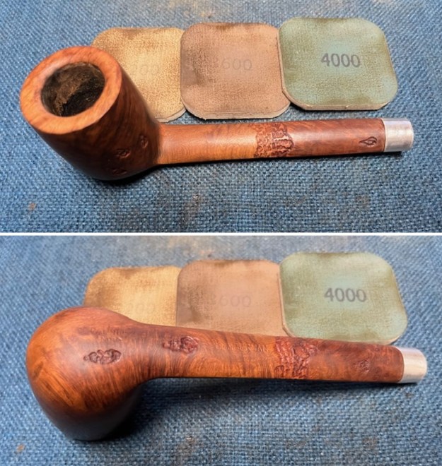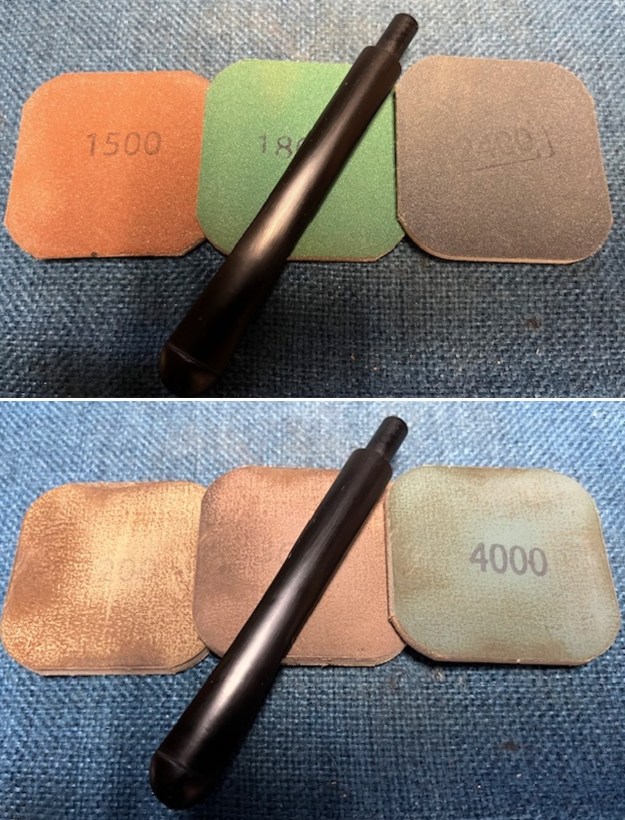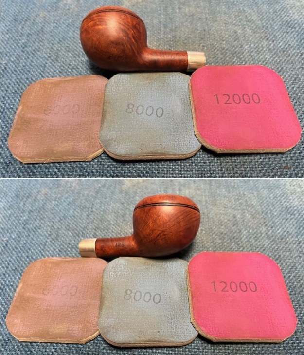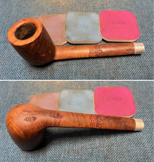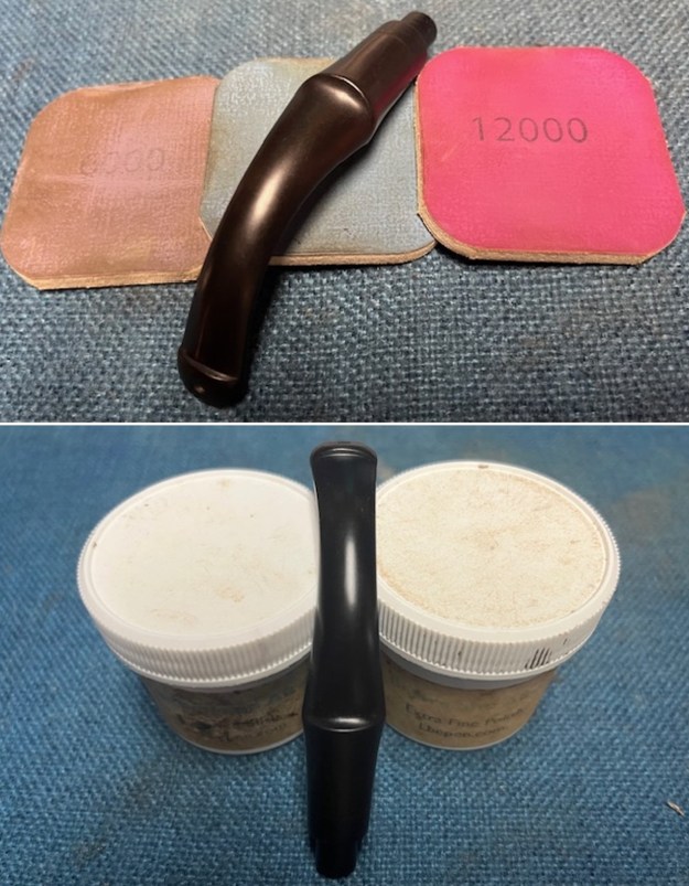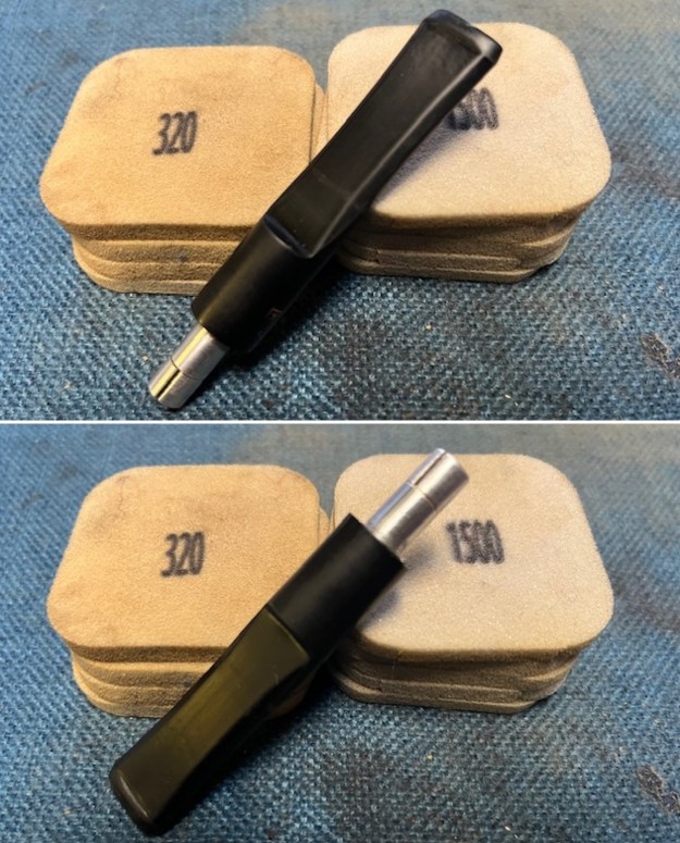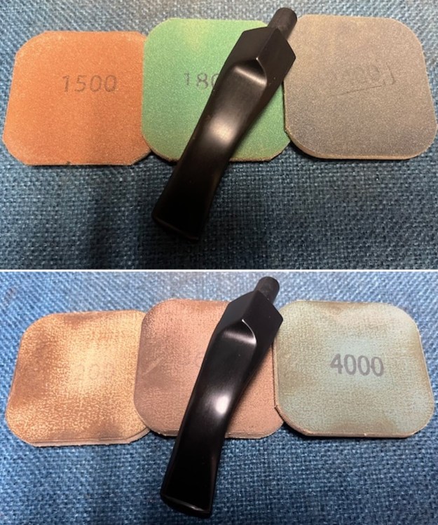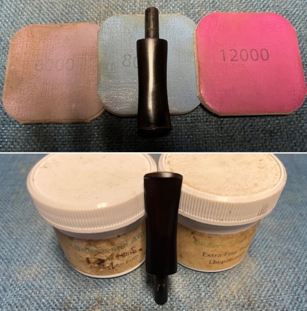 I polished the stem with micromesh sanding pads – 1500-12000 grit pads. I wiped it down with Obsidian Oil after each sanding pad. I used Before & After Pipe Polish – both Fine and Extra Fine to further polish the stem.