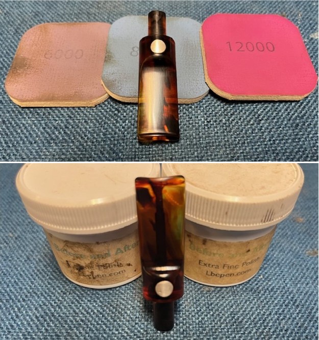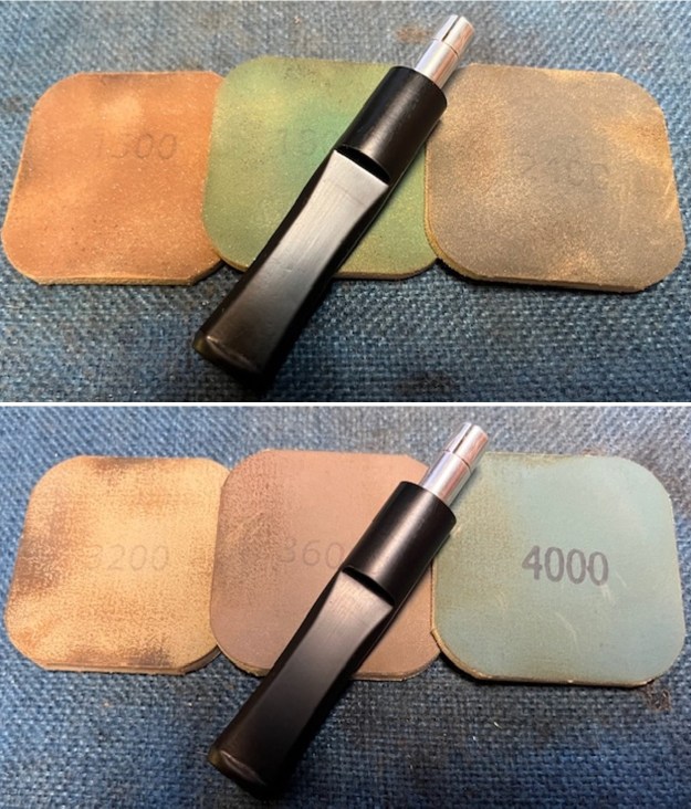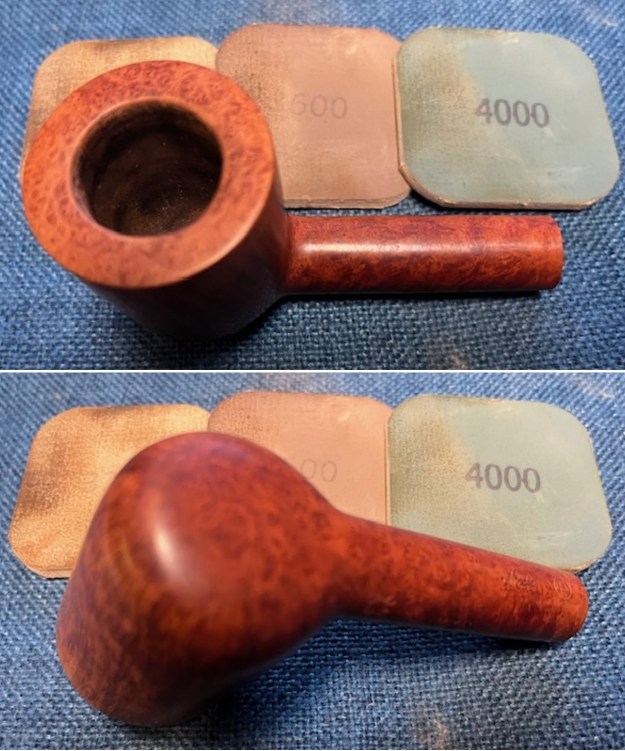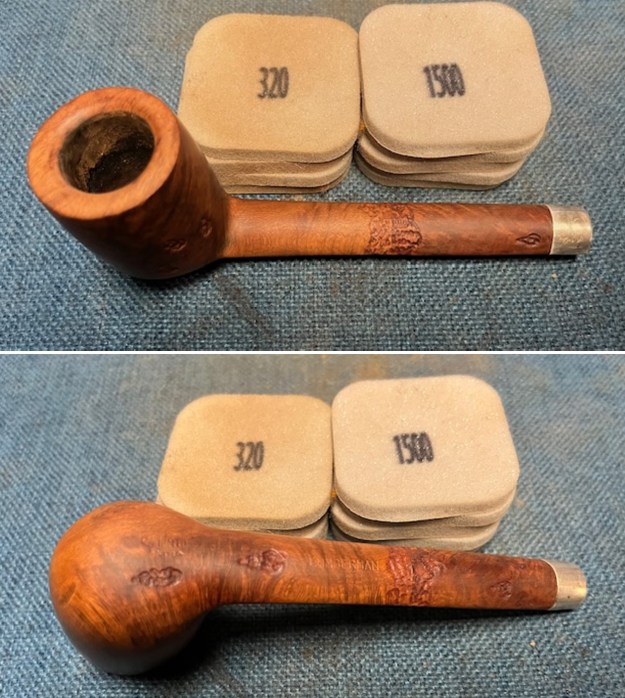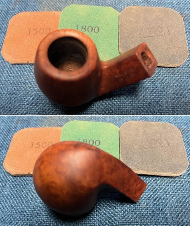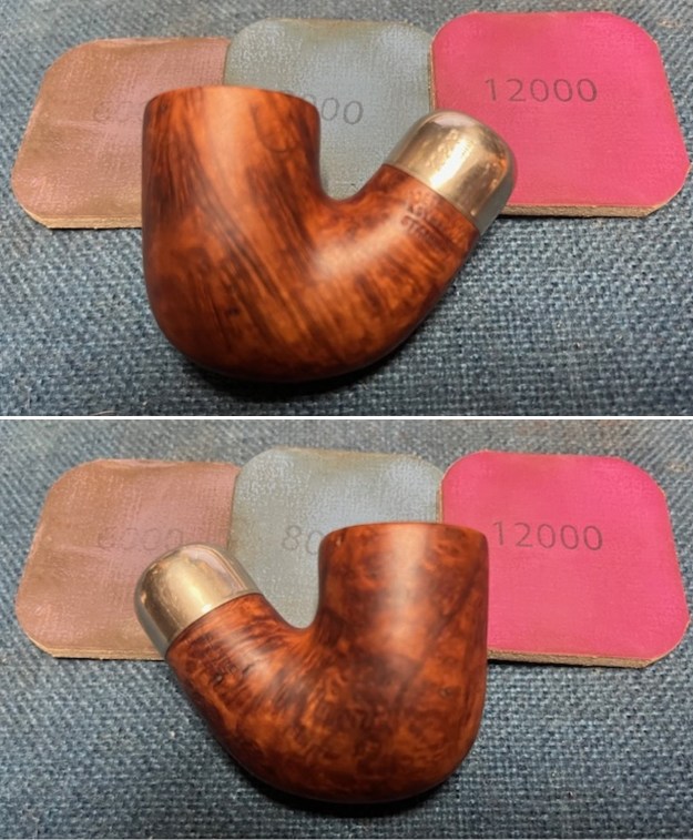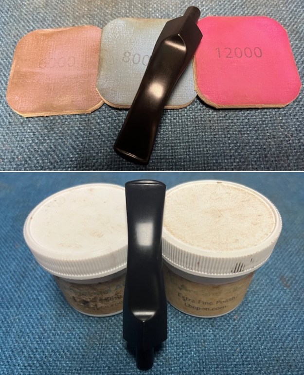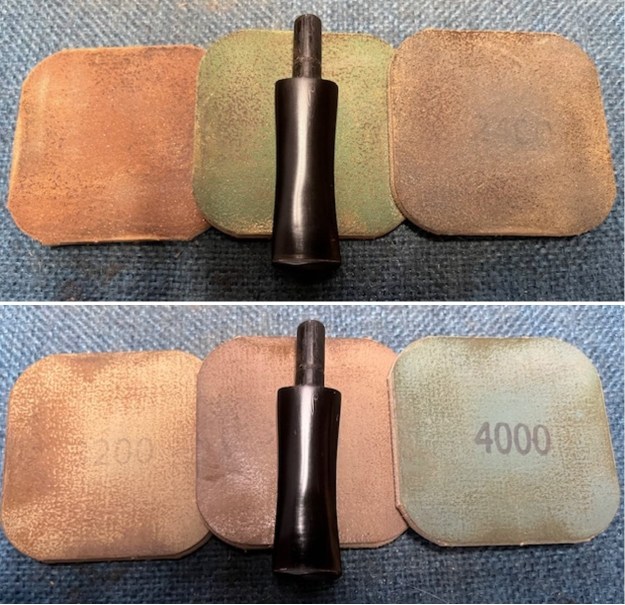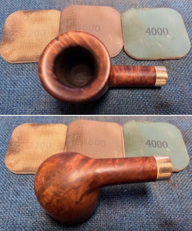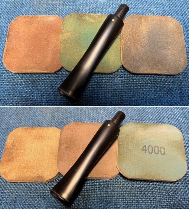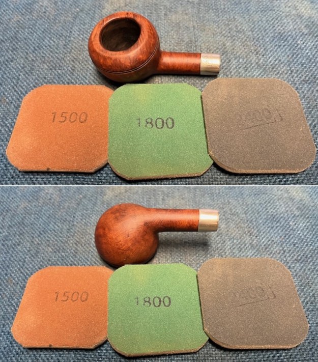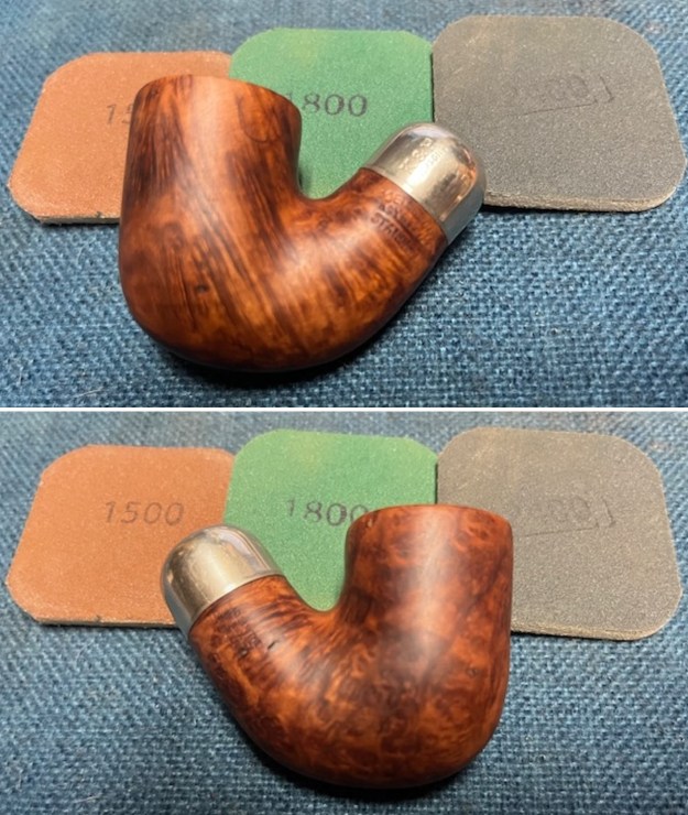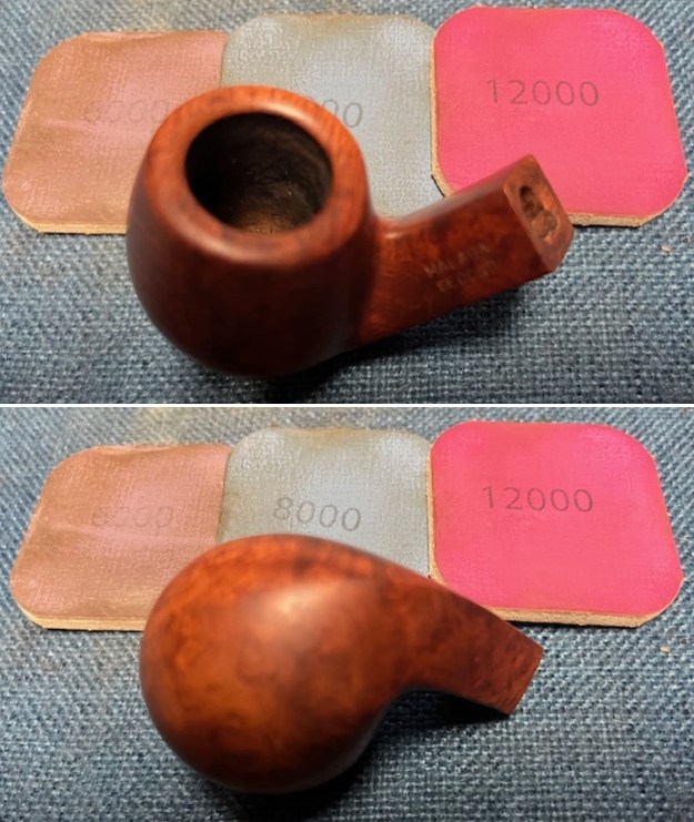 I polished the stem with micromesh sanding pads – 1500-12000 grit pads. I wiped it down with Obsidian Oil after each sanding pad. I used Before & After Pipe Polish – both Fine and Extra Fine to further polish the stem.