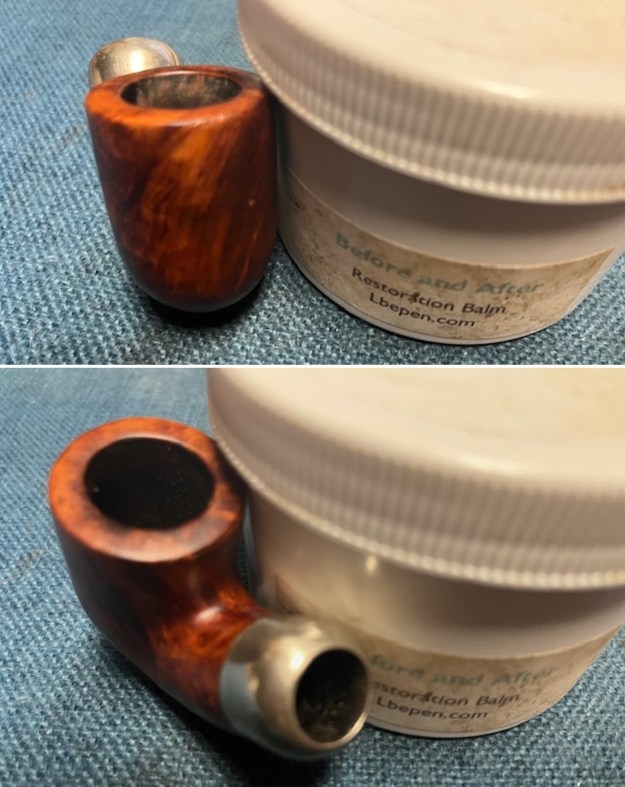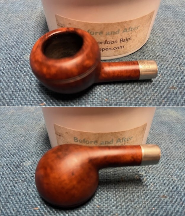 I rubbed the bowl down with Before & After Restoration Balm. I worked it into the surface of the bowl sides and shank with my fingertips. The product works to clean, enliven and protect the briar. I let the balm sit for a little while and then buffed with a cotton cloth to raise the shine.
