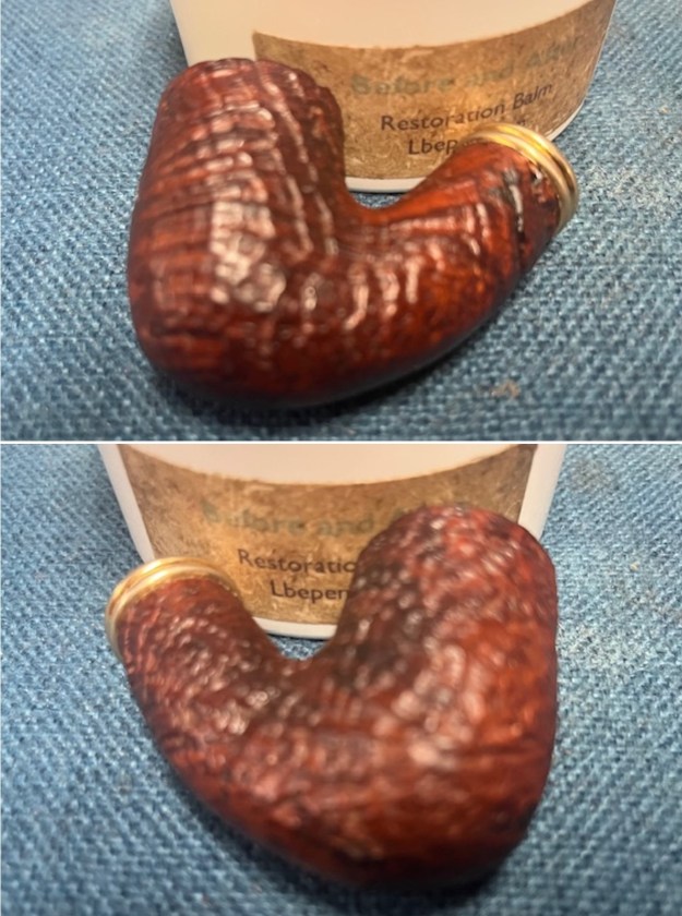 The bowl was in such good condition after the clean up that I worked some Before & After Restoration Balm into the surface of the briar with my finger tips and a horse hair shoe brush to get into the crevices of the plateau and sandblast portions. The product is incredible and the way it brings the grain to the fore is unique. It works to clean, protect and invigorate the wood.