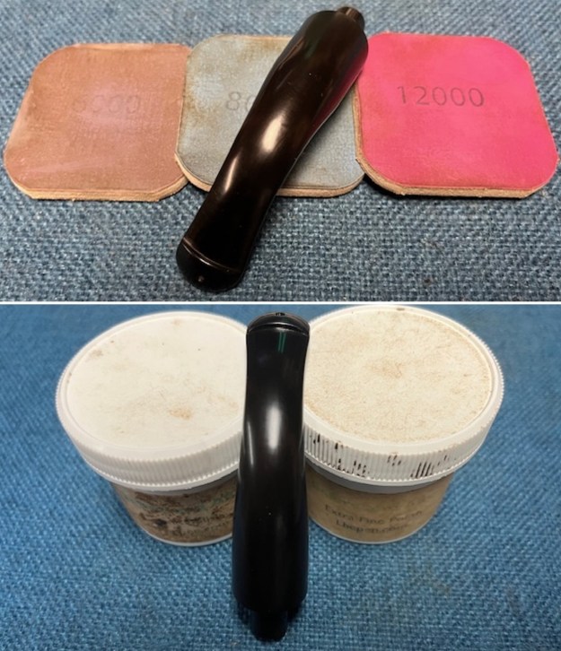I polished the stem with micromesh sanding pads – dry sanding it 1500-12000 pads. I wiped it down with Obsidian after each pad to remove the dust and polishing debris. I polished it with Before After Pipe Polish – both Fine and Extra Fine. I gave it another coat of Obsidian Oil.