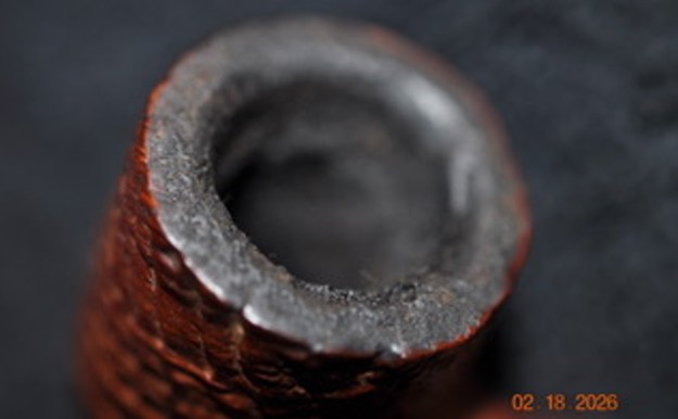 I took close up photos of the stem and the rim top to show both how clean they were. The rim top and bowl look good. There is some slight damage in the blasted rim top on the back of the bowl.