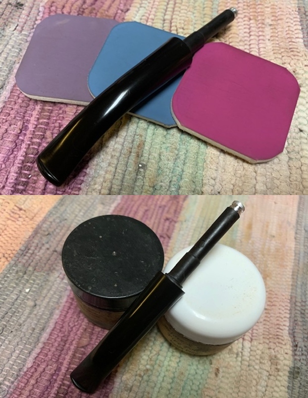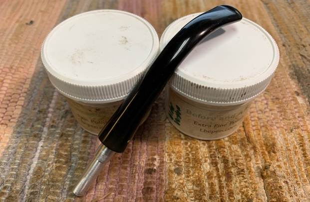 To complete the restoration, I mounted a cotton cloth buffing wheel on to my hand held rotary tool and polished the stummel and stem with Blue Diamond compound. This compound helps to remove the minor scratch marks that remain from the sanding. I wiped/ buffed the pipe with a soft cotton cloth to clear it of any leftover compound dust.