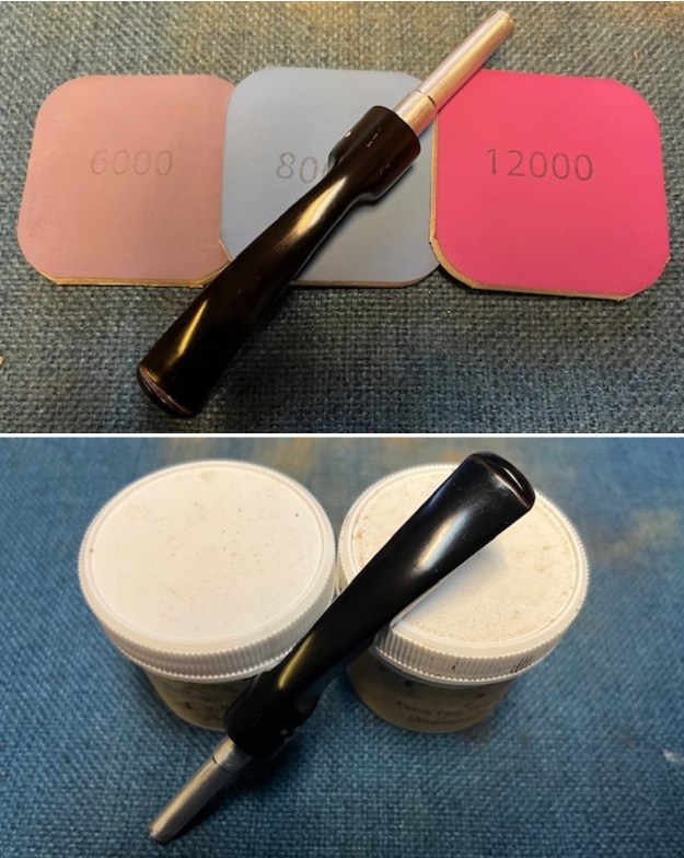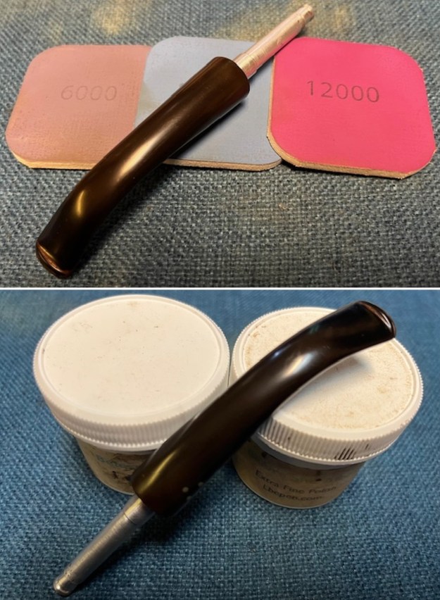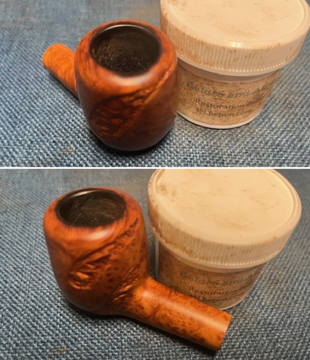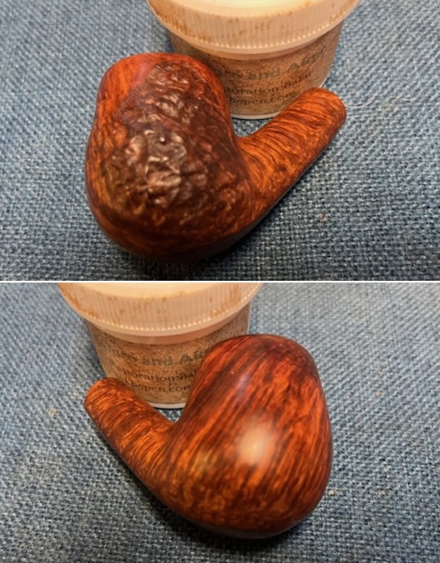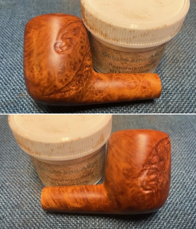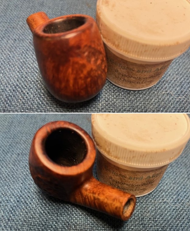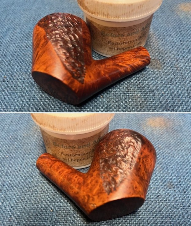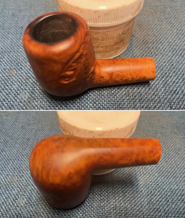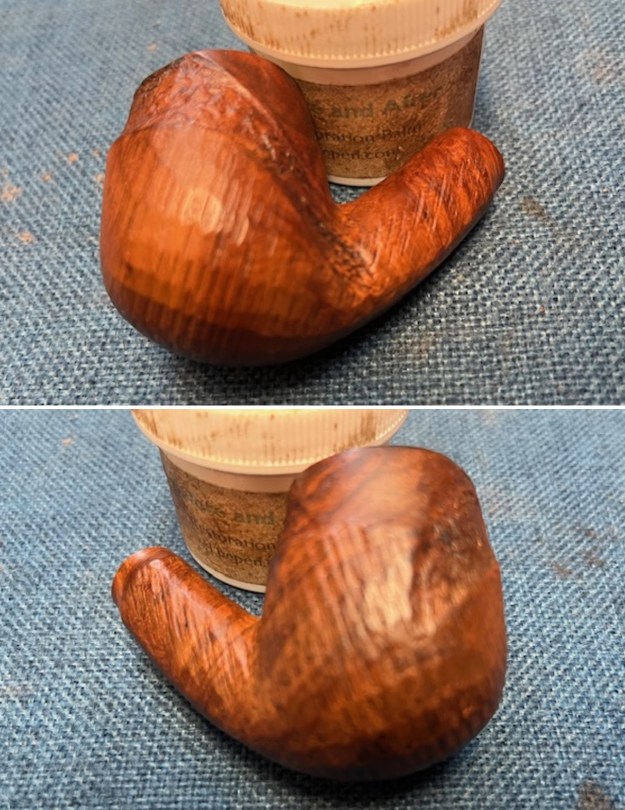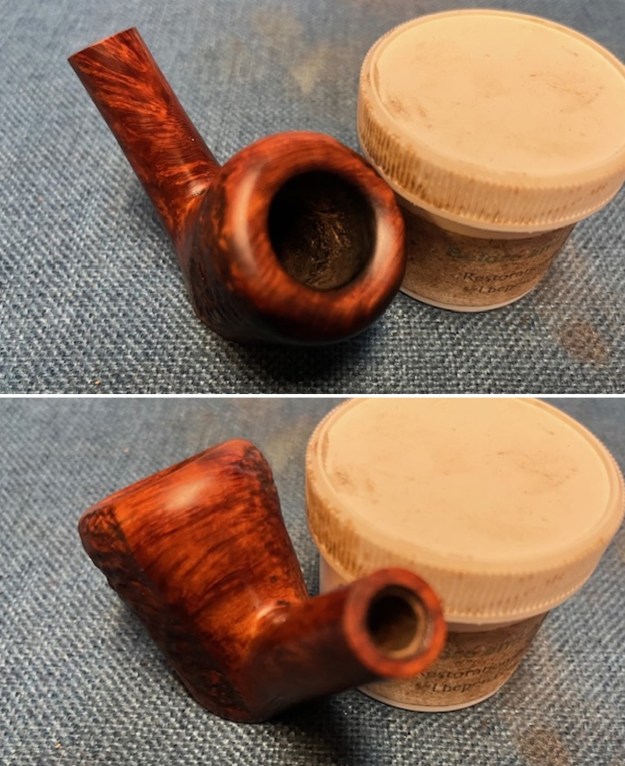 For the final step, I took the pipe to my bench polisher and carefully buffed it – first with a blue diamond compound, then with three coats of conservator’s wax. This procedure makes the pipe look its best – the stummel sings and the stem glows.