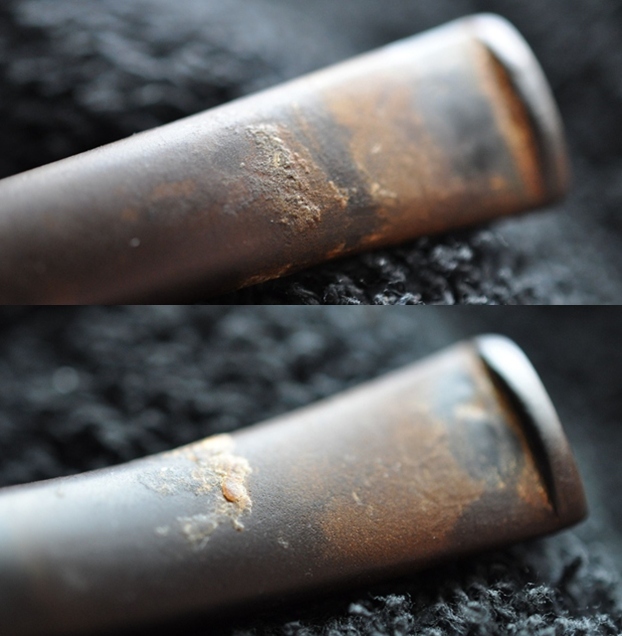 I used a disposable lighter and ‘painted’ the stem with its flame. The gentle heat of the flame can cause the dents in the vulcanite of the stem to expand back into shape. In this case, the vulcanite did move – which was great – but it didn’t move fully. No problem.