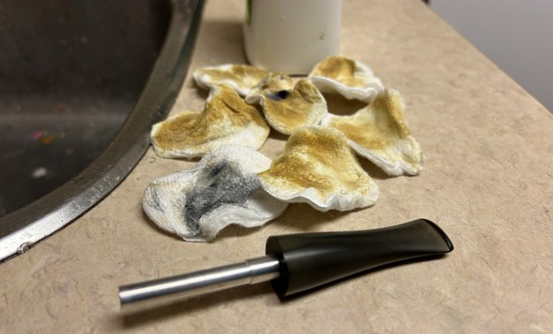 I used isopropyl alcohol on a few cotton rounds and wiped down the stem to provide an initial cleaning of filth before moving on to the next steps. The primary cleaning came next. I disinfected the inside of the stem with both pipe cleaners and cotton swabs dipped in lemon-infused 99% isopropyl alcohol. I scrubbed thoroughly to make sure the interior was very clean. I used a lot of pipe cleaners and cotton swabs – it was surprisingly dirty in there.