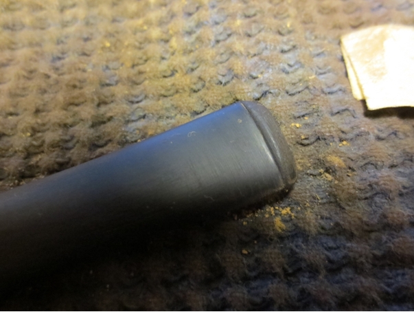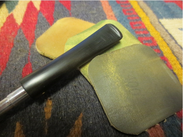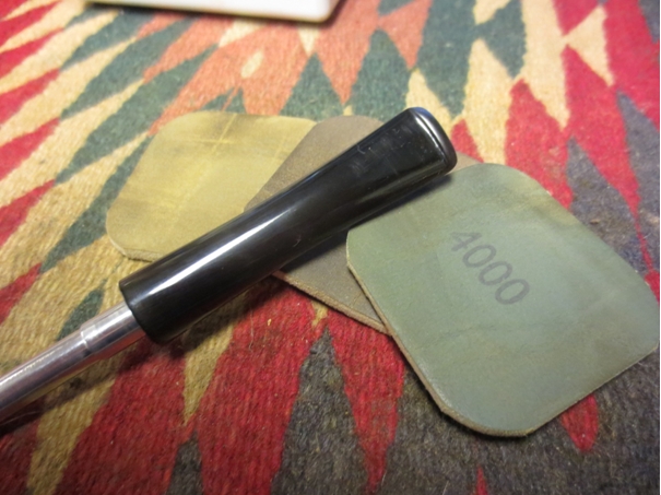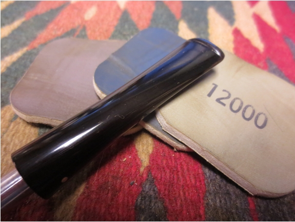In order to lessen the burns damage on the rim, I ‘topped’ the pipe – that is to say, I gently and evenly sanded the rim on a piece of 400-grit sandpaper. This effectively minimized the damage, without altering the look of the pipe. Fortunately, this required only minimal topping.