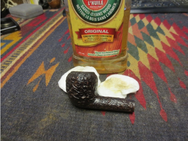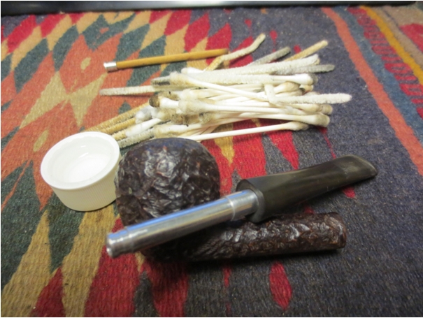 Similar to the stem, I then cleaned the stummel with both pipe cleaners and cotton swabs dipped in lemon-infused 99% isopropyl alcohol. With a pipe this dirty, it took quite a while and much cotton to clean. It was very dirty.