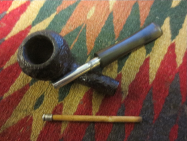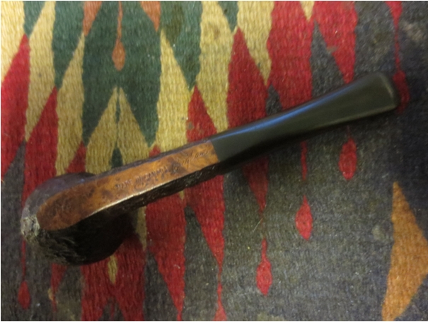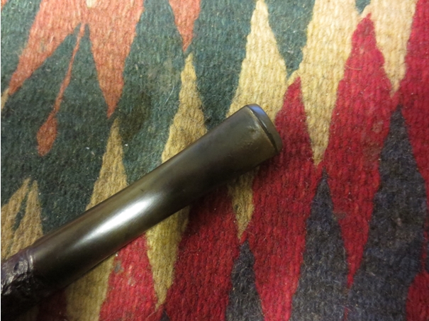 Let’s examine what marks it does have. On the underside of the stummel, we read Brigham [over] Made in Canada. Of course, how those words are marked is what matters in dating Brigham pipes. I’ll get back to that. To the left of the aforementioned markings is the solitary digit 3. I can only assume that this refers to the three brass pins found on the stem.