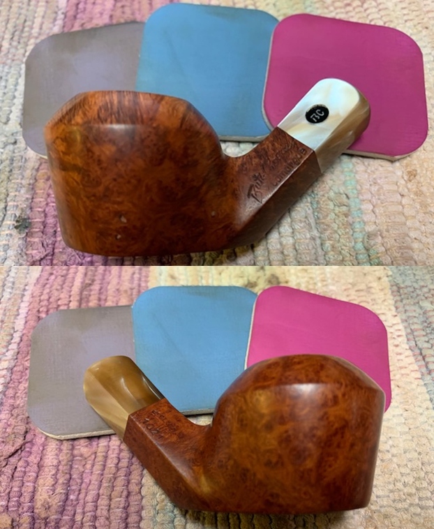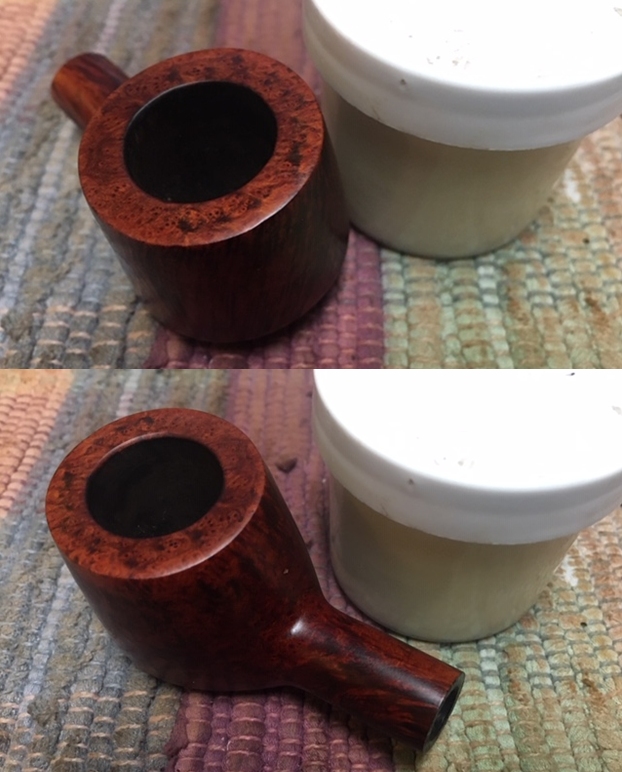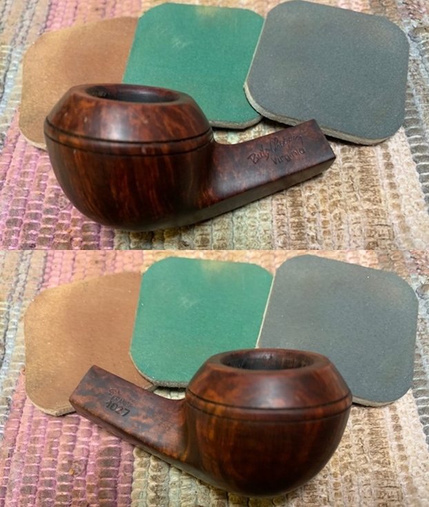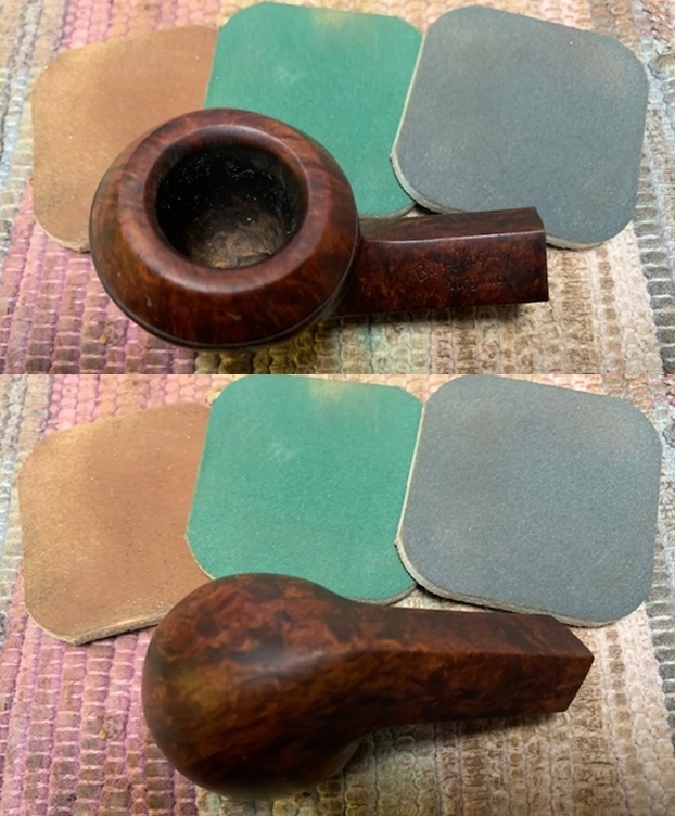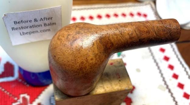 After 15 minutes or so, the stummel is buffed with a microfiber cloth to remove the excess Balm. It takes a bit of work, but the bowl looks better; and for now, I will think about adding any additional coloring. I move on.
