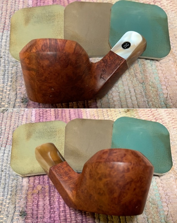 The shape number is listed in a picture of BC pipes in the Pipedia Butz-Choquin article. The 1597 is an attractive, stout square shanked paneled Billiard with a saddle stem friction mounted. The only difference in the general 1597 shape with the Costaud is that the Costaud’s stem is a friction mounted fishtail.