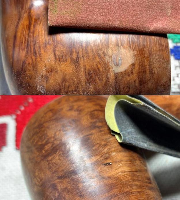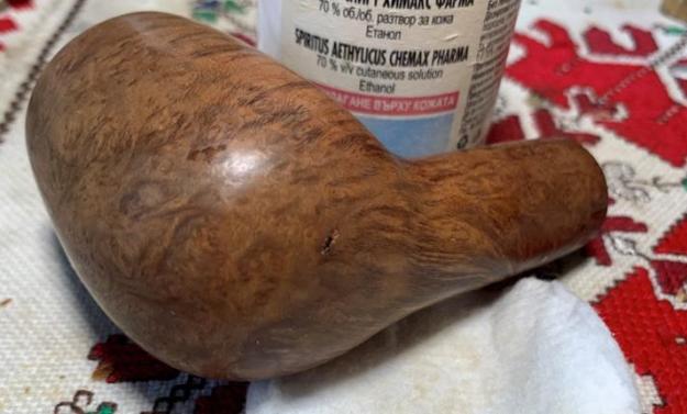 The next morning, a cotton pad wetted with alcohol and used to wipe down the newly dyed stummel to remove excess dye and to blend.