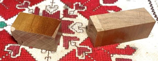 In Steve’s earlier email, he suggested using walnut as the joint material or a hardwood of some sort. I do not have walnut on hand, but I do have another hardwood – cherry. The cherry wood is a flat piece serving as a shelf end on my worktable! It used to be an extender of a cherry wood table that became my worktable!