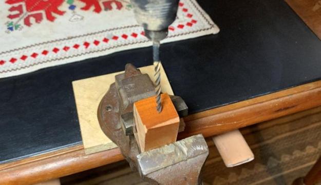 The mortise is also expanded to match the diameter of the acrylic shank cap’s diameter. A burr is carefully used to expand the mortise.