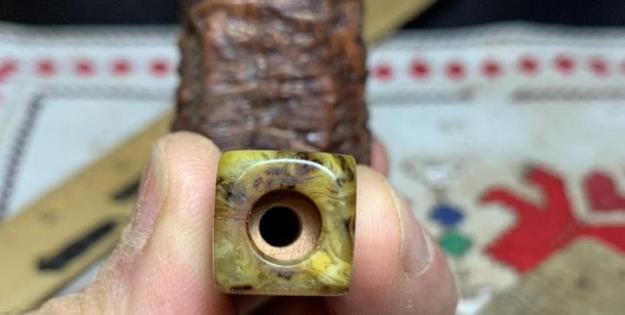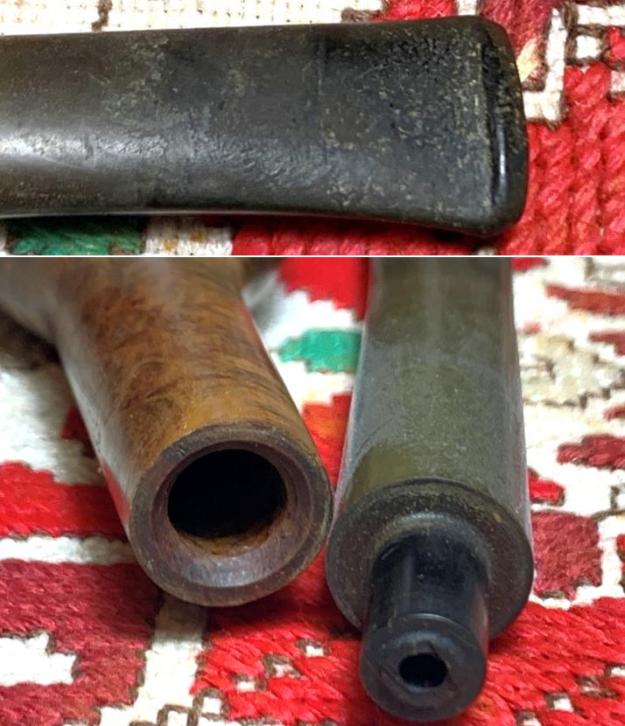 While restoring the stem, I’ve had more time to consider the next steps in the shank cap repair. Since this is my maiden voyage doing this kind of repair, the brain has been ticking through the process one step at a time weighing the logical sequential steps. To get a frame of reference, I measure the width of the former joint or ‘plug’ and the corresponding internal width of the shank cap with the result of 7/16 inches or 11mm. The standard airway is 3/16 inches, and this airway corresponds.