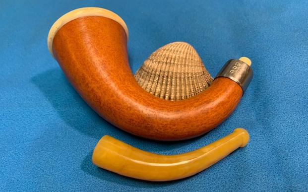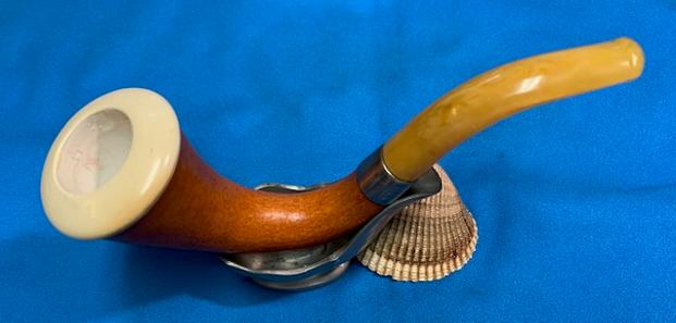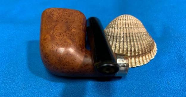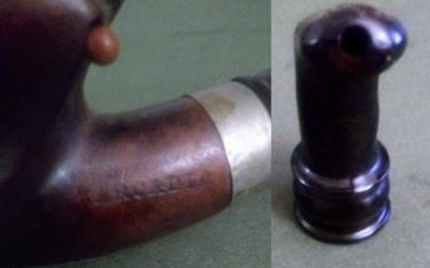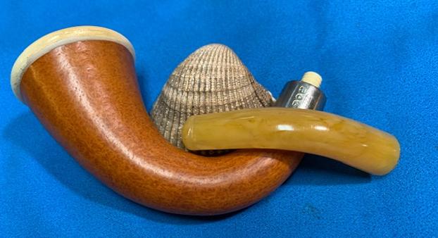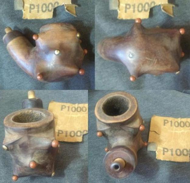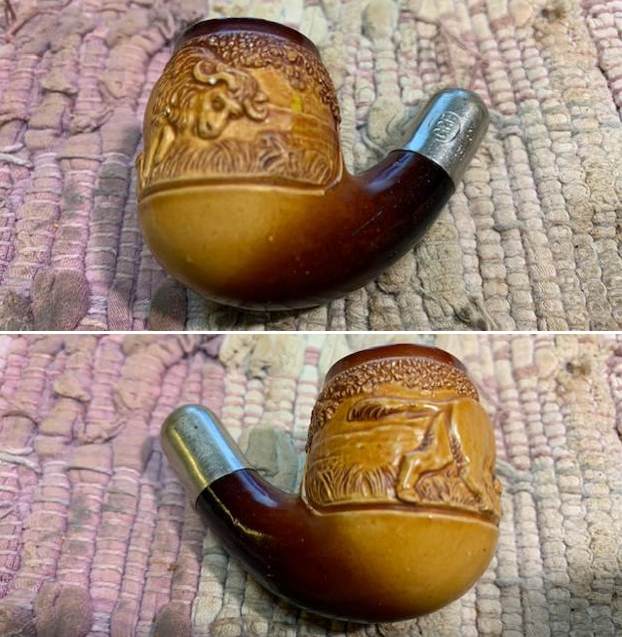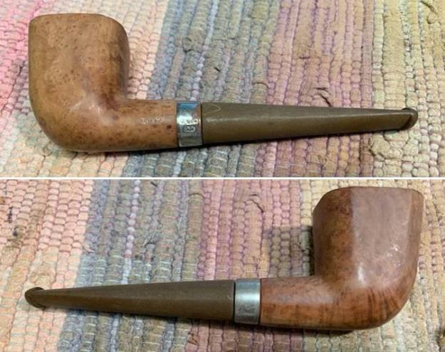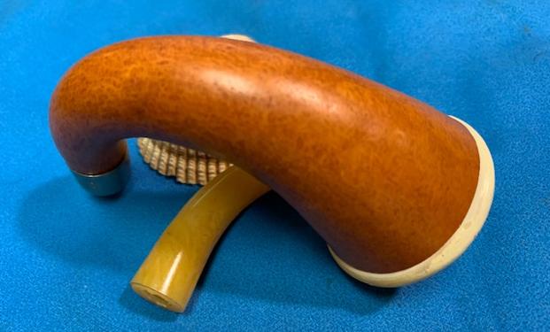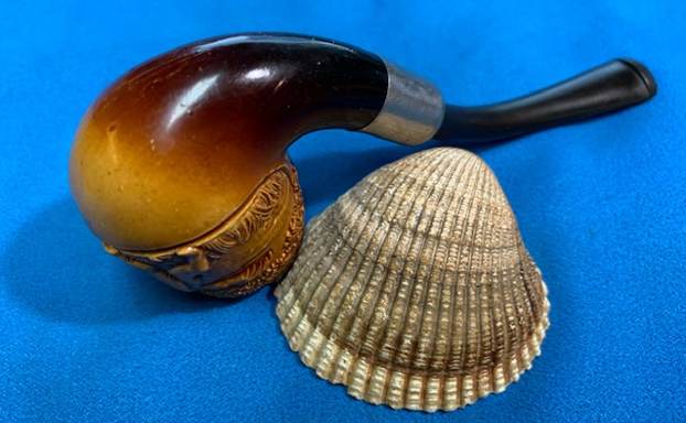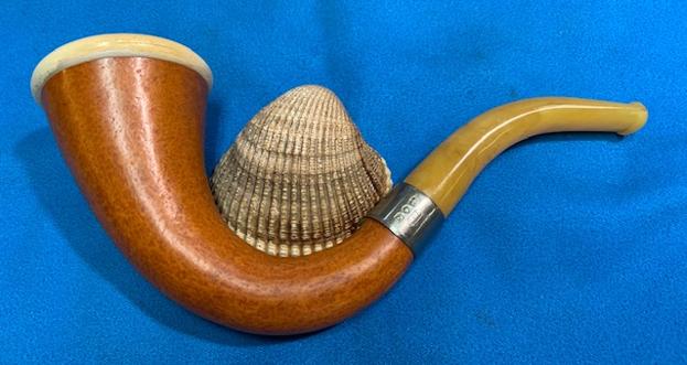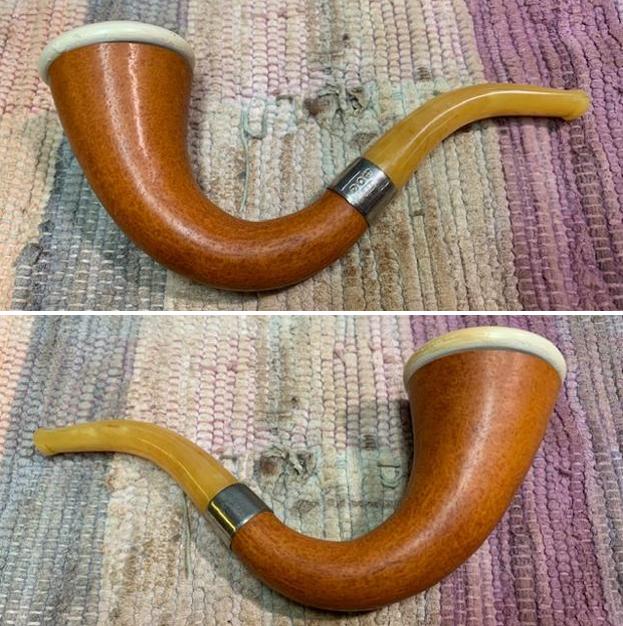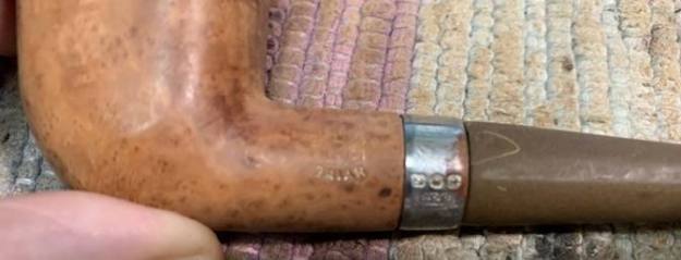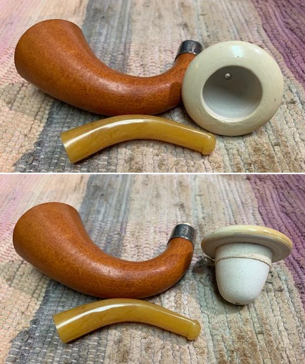 The severe chicken pox-like similarities are undeniable, and I scrutinized every word and photo of Steve’s blog in hopes of connecting the dots (I’m so sorry, that just popped out) of the definitely funky tobacco pipe specimens. Struck by a gung-ho fit to research the abbreviation “AF&C0” in Steve’s third photo above, I interrupted my reading to find the answer before continuing and learning Steve already had done so: Adolph Frankau & Co. of England. Steve’s work restoring the meerschaum that he also dated to 1905, thanks to great detective work tracing the unique hallmarks on the sterling silver band, was phenomenal, in particular the addition of a Bakelite stem that he not only fitted to the shank but made look as old as the original stummel.
