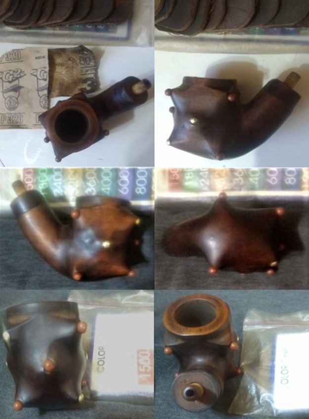 I used all nine micromesh pads (1,500 through 12,000 grit) to sand the outside of the stummel and finish it off. This sanding minimizes flaws in the briar and provides a beautiful smoothness to the wood.