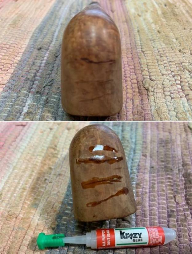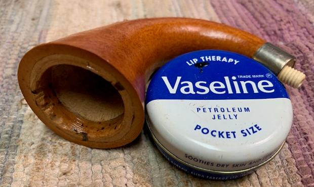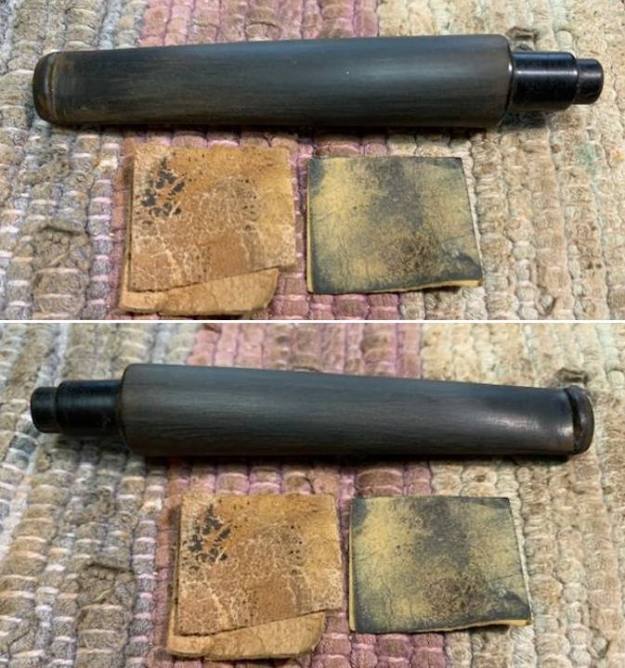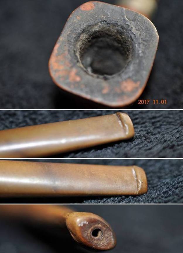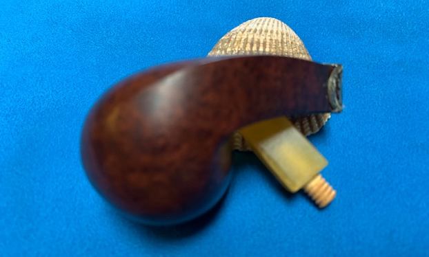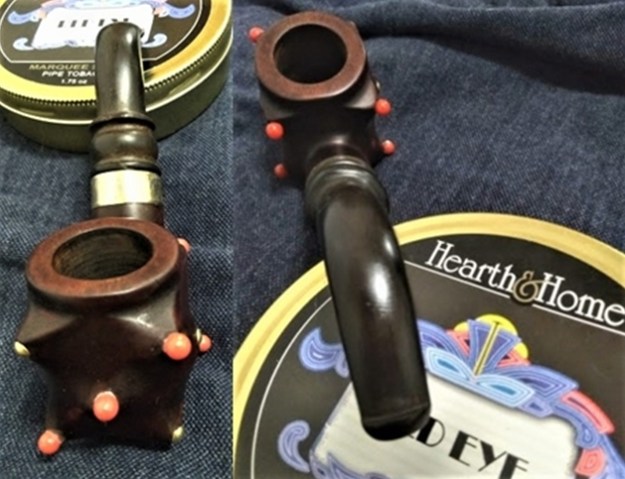 The one prospect I didn’t even consider until I examined the holes left by the missing “bulbs” was that some antique version of map pins might have been used when the pipe was adorned in such an unconventional way by its maker. But when the time came to remove the bulbs that were still intact, I found out they were indeed nothing more than map pins from more than a century ago. All I had to do was snip off the longer metal ends of the new ones and Super Glue them into the slots. I still don’t know how the brass studs are attached because I didn’t want to mess with them. I’m curious by nature, but I have limits. My dad always said, if it works, don’t fix it.