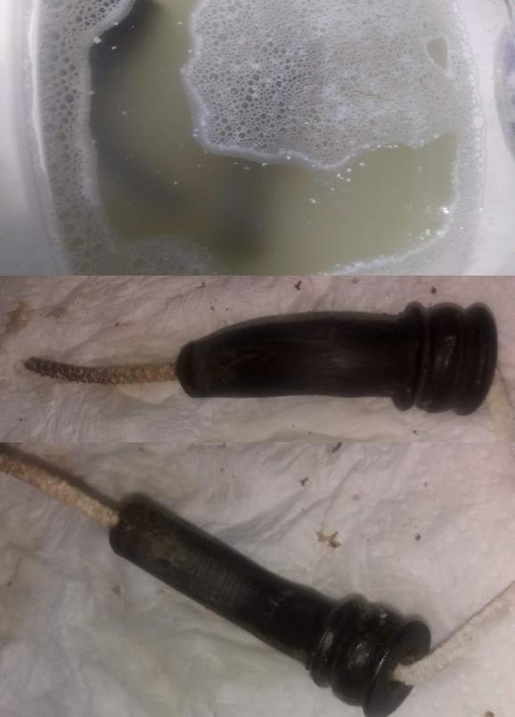 While the stem had been taking a bath, I soaked the stummel in Isopropyl alcohol. I was worried about the possible effects of the alcohol on the bulbs, but somewhat less catastrophic in the potential result than the Trinity Tests of the atom bomb south of Albuquerque nearing the end of World War II, I took a gamble.
