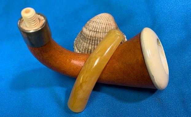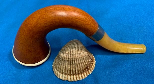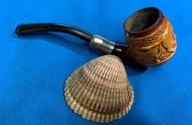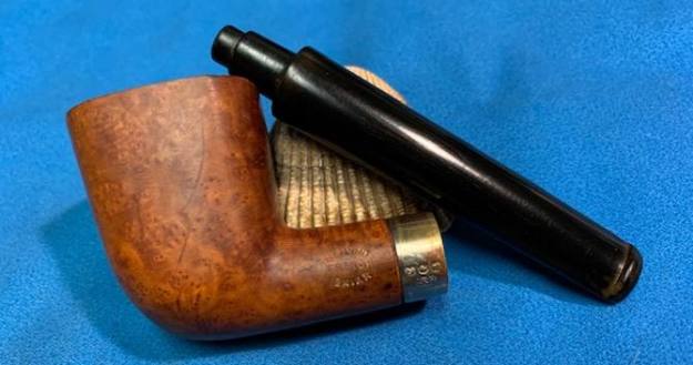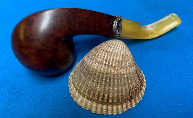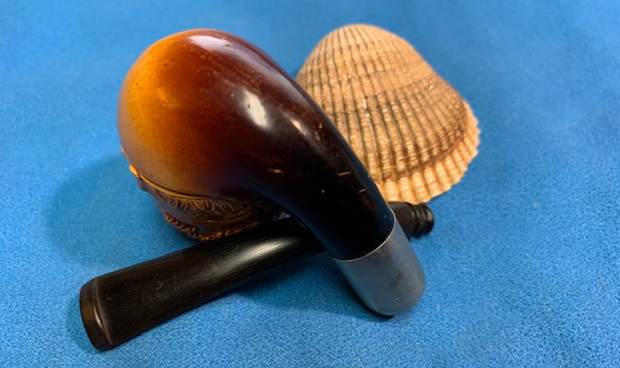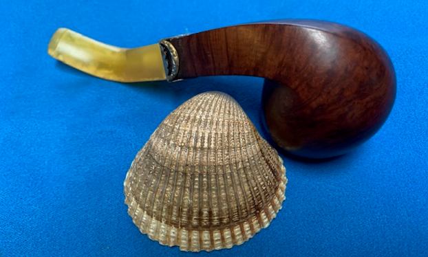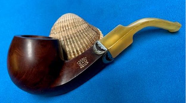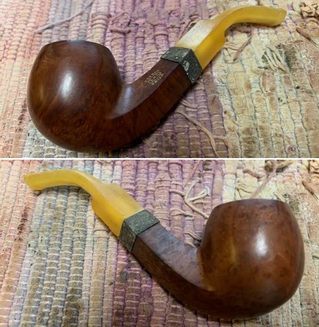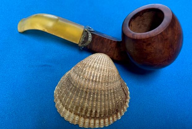 Returning to Steve and his inspired flash that the “knobby meer,” as he called it, and the CPF Arcadia are related, Steve told me he now questions whether the meerschaum is a real BBB, owing to certain unstated problems with the band. Steve is the expert, but this time I have to disagree and urge him to stick with his instincts. The notion of the meerschaum, knobs and all, being a bona fide BBB is no wilder than my briar, with its gaudy plastic bulbs and brass studs, being a genuine CPF, and I do not mean to suggest in a roundabout way that neither is the truth. Granted the extremity of different materials used to make the pipes, and the necessity of alternate methods for achieving the knobby looks, and still further suspending disbelief because of the admitted implausibility of the idea, I nevertheless can’t help thinking that the connection is the actual crafter of the two pipes. To be blunt, I think the same person made both of them. Of course, I will never be able to prove the theory. Well, isn’t that convenient, as the Church Lady used to say.