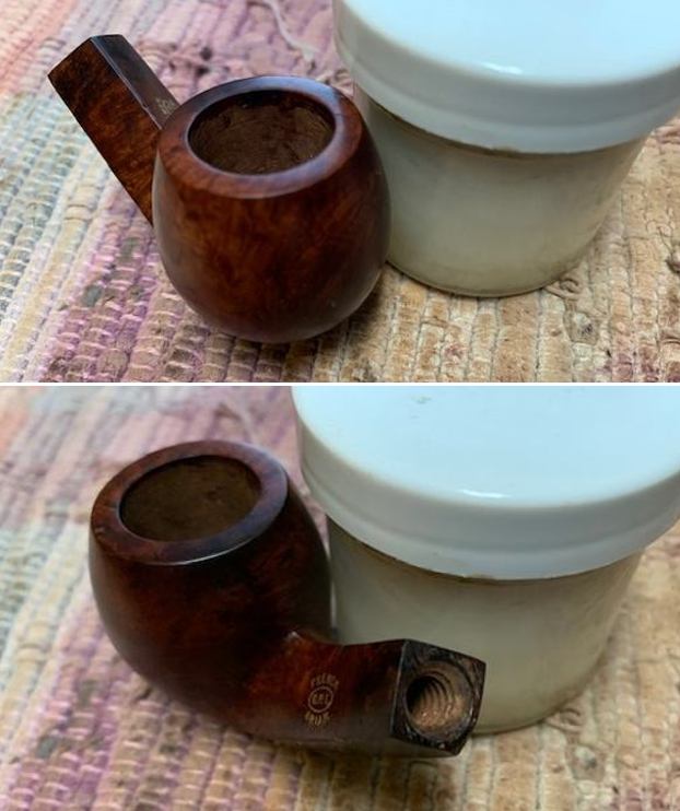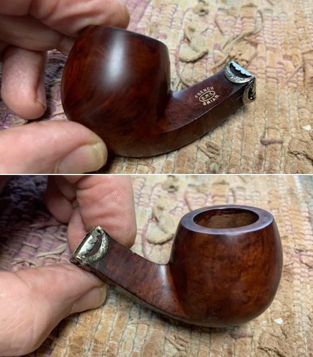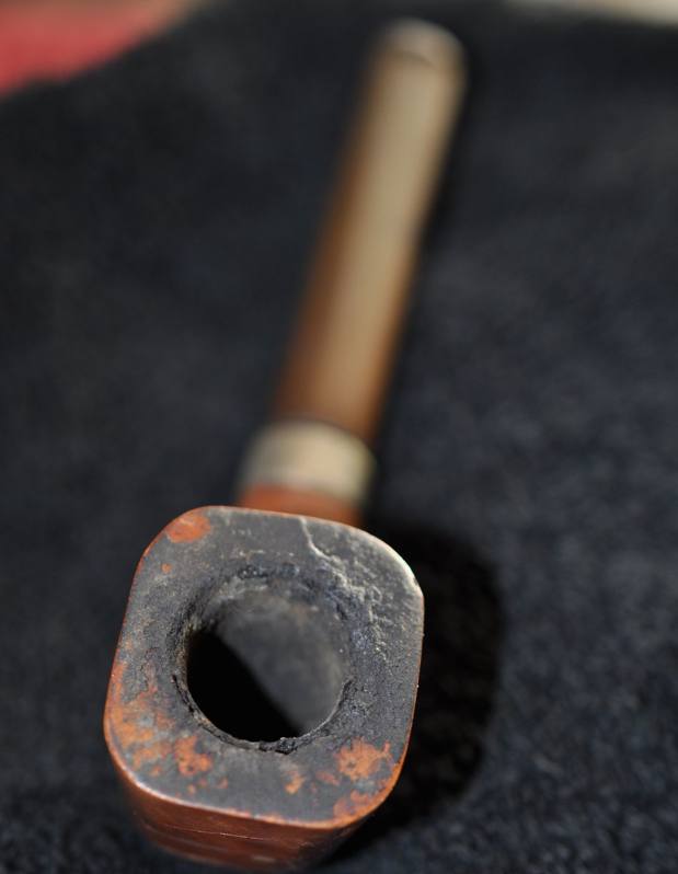 In particular, I finally figured out that the stem was not Vulcanite but black horn, and the metal band boasted that it was “Nickel Plated.” What kind of pipe brags about having a nickel plated band? Nowadays, that’s the bottom of the barrel. So I looked up nickel plating history online and learned that in 1837 the first crude electrochemical nickel plating of platinum was accomplished. Really? Someone thought to cover up the most precious metal with nickel? You bet he did, and in 1869 a better process that became the industry standard for 70 years was discovered. The purpose of nickel plating certain other metals, of course, remains nickel’s resistance to tarnishing and corrosion. The only logical explanation for the proud “NICKEL PLATED” stamp on the band of my CPF, therefore, is that the process was still relatively new. Given that point and the use of black horn stems being much less common in the late 19th and early 20th centuries, when amber and Bakelite predominated, I am satisfied the pipe was created in the waning years of the Victorian Era.