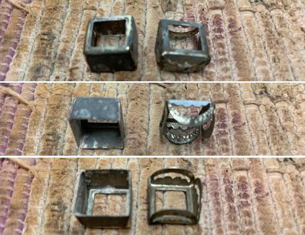 As mentioned, the markings of the pipe included the initials C.P.F. on the left side of the shank. No other markings were in the briar. However, the brass (or nickel) band also had some markings. First, there were a set of faux hallmarks (anchor, star, bird?) above another engraving of C.P.F.