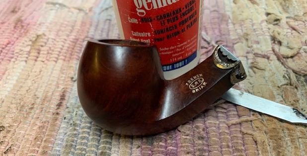 Steve and I both have a few very old rim caps, specifically for C.P.F. pipes. We scoured both of our piles and found a perfect one in his collection. It fits correctly and is just the sort of piece that a C.P.F. pipe of that era would have had. I gave it a quick buffing with some old MicroMesh pads.