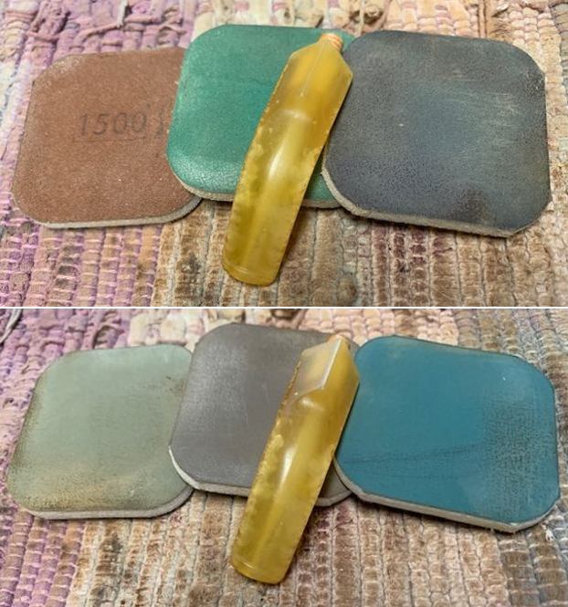I started the next longer part by sanding the rim with 400- and 1000-grit papers, then the rest with 1000.