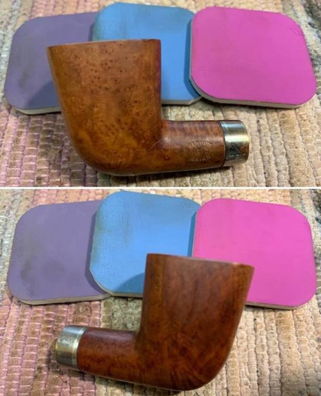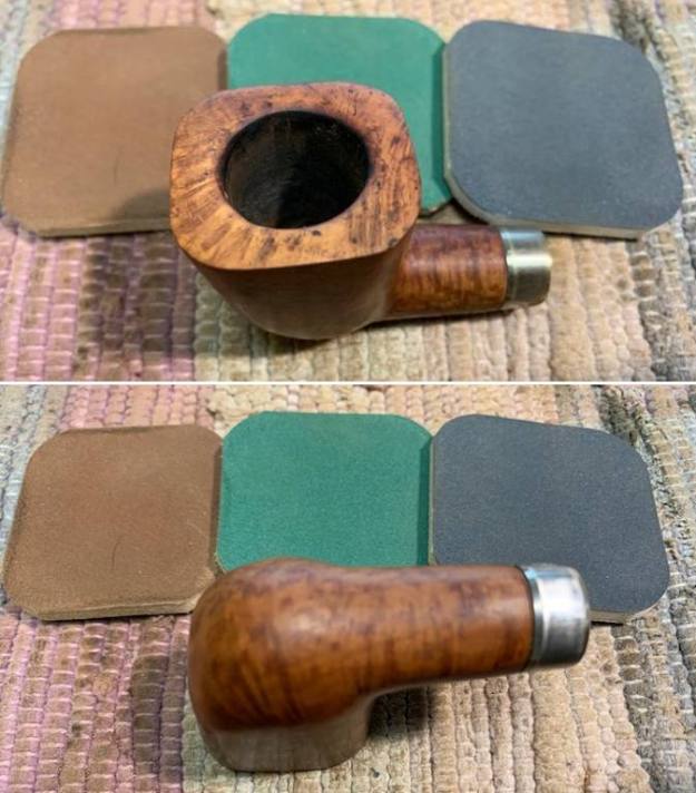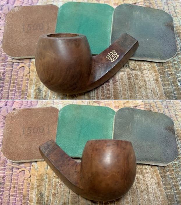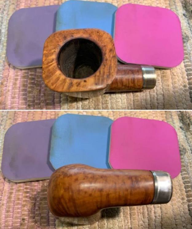 Smoothing the chamber with 60- and 320-grit papers, I followed up with a full micro mesh of the rim and rest of the outer stummel.