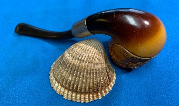 It isn’t often that I get to work on pipes that are more than a century old. It does happen from time-to-time, but – regardless – it is a delight when it does happen. This pipe came to me from an auction and it immediately caught my eye. First, I saw the initials, C.P.F., and I knew that meant the pipe was very old. Second, the shape of the pipe was unusual: an egg and claw. This is something that one sees in meerschaum pipes occasionally, but less so in briar pipes. Third, I could tell that the rim cap was lost to time and that the stem seemed … odd – but I couldn’t (yet) put my finger on why. A special thanks is due to Steve for his help on this restoration. The pipe is absolutely charming and a wonderful example of the pipe-making of a different era.
