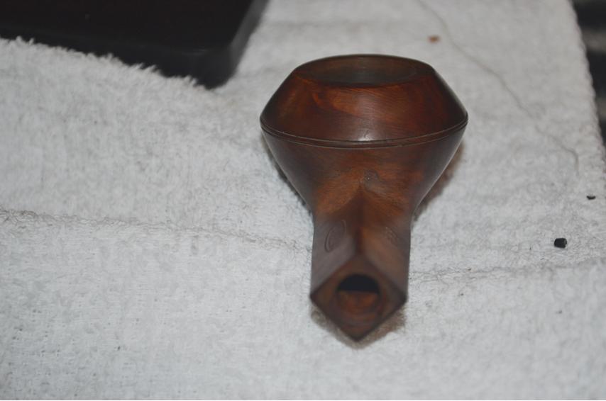 Last night I took the pipe out of the box of pipes for restoration. I took a photo of the case it was in to show the condition it was in. The leather was in very good shape for a pipe of this age. The outside of the case is stamped in gold PWS in an oval followed by Echt Bruyere & Bernstain. That translates as follows. Echt = Genuine, Bruyere = Briar and Bernstain = Amber. The description fits the pipe that is in the case. It states that the pipe in the case is Genuine Briar and Amber. I am not sure of what the PWS means on the case or how it connects to GBD.