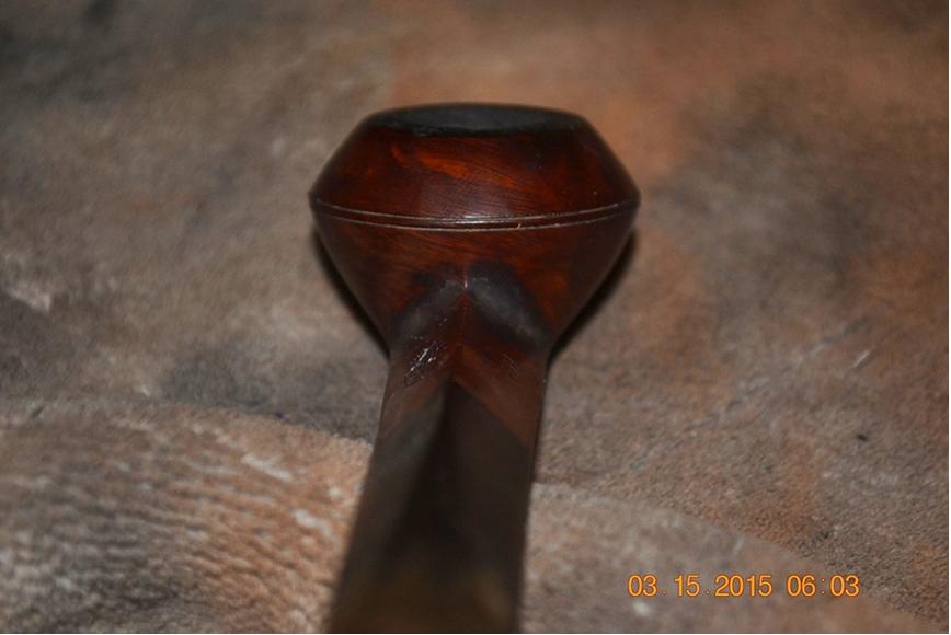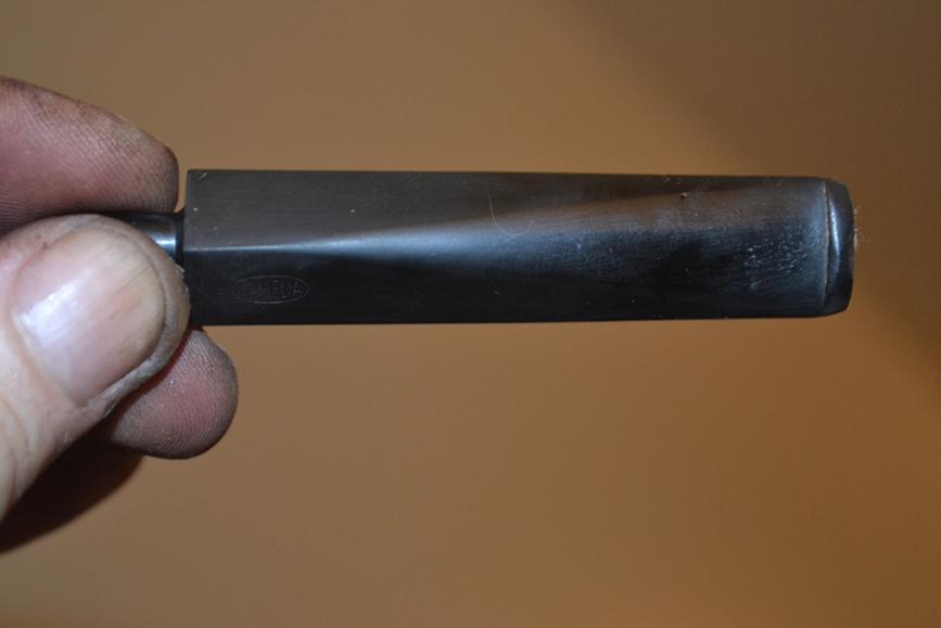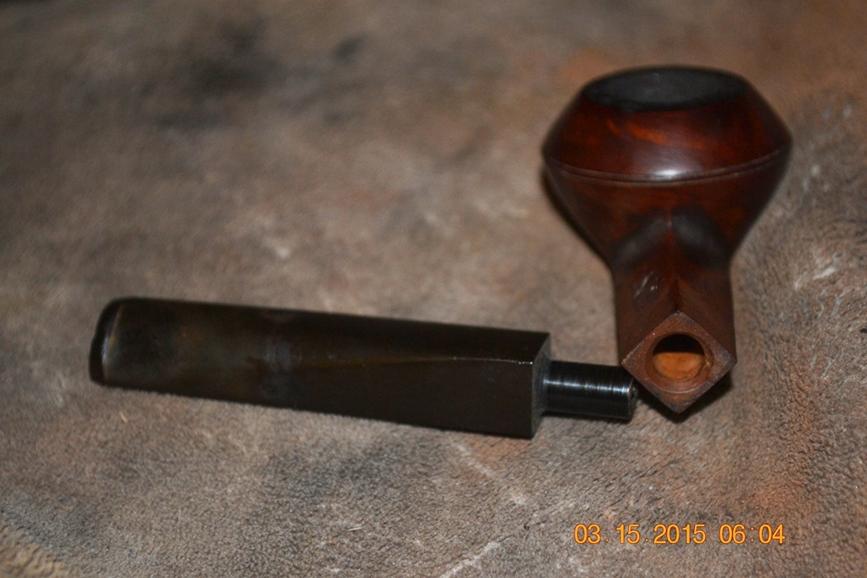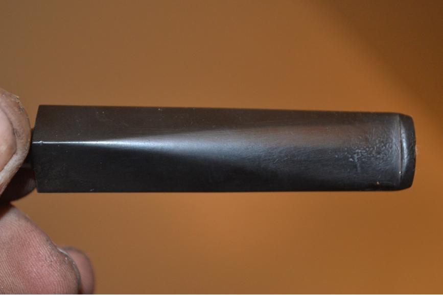 Jeff also took photos of the tenon on each of the stems. Both are bone push tenons rather than the older style threaded bone tenons. The tenon on the amber stem has more of a taper to the end before the nipple. The tenon on the horn stem is more even from the end of the stem to the end of the nipple.