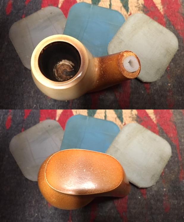 He did his usual thorough cleanup of the pipe. He reamed the bowl with a Savinelli Fitsall Pipe Knife to scrape out all of the cake. He scrubbed the internals of the pipe with pipe cleaners, cotton swabs and alcohol. He scrubbed the exterior with Murphy’s Oil Soap and a tooth brush to remove the grime in the finish of the bowl. He was able to get much of the lava off the top of the rim. He rinsed the pipe with warm water to remove the soap and dried it off with a soft cloth. I took photos of the pipe when I received it to show its general condition. It is an interesting pipe.
