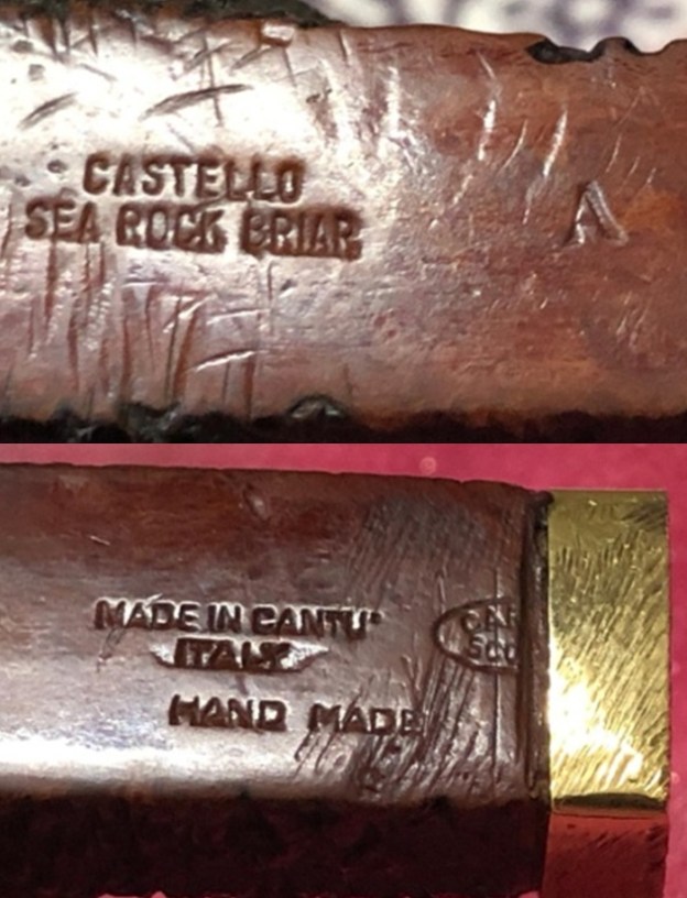 From the above, it is evident that the pipe currently on my work table is from an early time period of Castello pipe making as evidenced by the stamp of SEA ROCK and WHITE BAR. That this pipe is stamped with the letter “A” is indicative that it was given for free to friends and IT IS VERY RARE. Lady luck smiled upon me during this purchase for sure!!