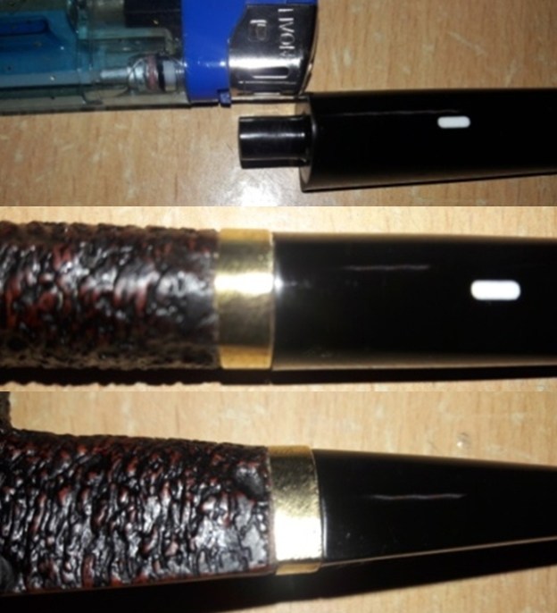 I checked the drilling of the mortise and it was perfect as expected. Next I checked the shank face and the gold band for unevenness but it was nice even and the band sat flush with the shank face. But yes, the seated stem in the mortise had some play in the fitting. I conferred with Steve on Face Time and he asked me to hold the stem upright with tenon side up. Immediately, it was apparent to both of us that the tenon had bent a little and was off center. To address this, I heated the tenon with the flame of a lighter till it was slightly pliable and carefully seated the tenon in to the mortise. Once completely seated, I adjusted the alignment and held the stem in place till the tenon had cooled down sufficiently. Again, though the seating is not perfectly flushed, the alignment of the stem and shank is near perfect. It has to be understood that we pipe restorers are undertaking repairs to the existing damages to make them functional again and not making new pipes, though we do strive for that kind of perfection. All said, I am quite pleased with this repair.