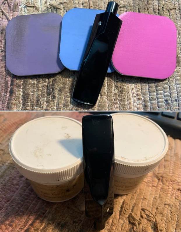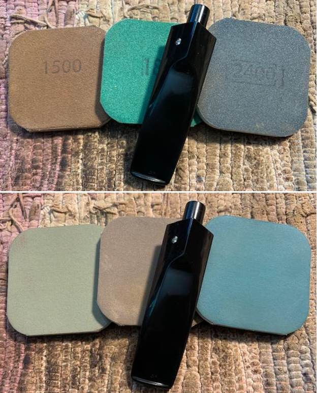 I set the bowl aside and turn to work on the stem. Because the marks and chatter are so light I use micromesh sanding pads – 1500-12000 grit sanding pads and water to wet sand the stem. I wiped it down after each sanding pad with Obsidian Oil on a cotton rag after each sanding pad even though people say it does nothing for acrylic stems. But I find it does two things – first it gives some protection to the stem and second it give the sanding pads bite in the polishing process.