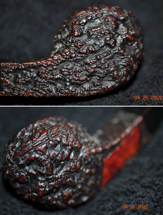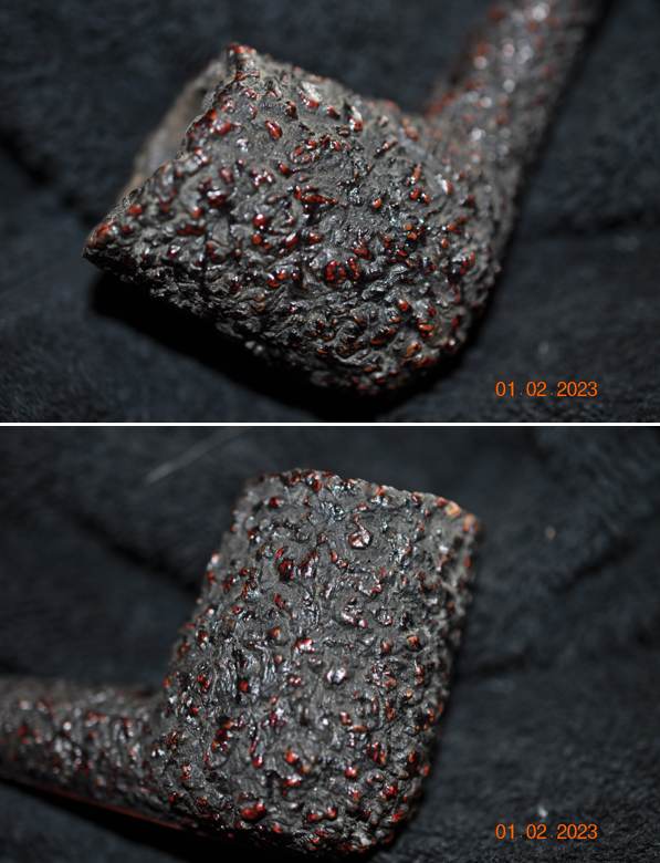 Instead of telling you what I see in the next photos of the sides of the bowl and the heel I want to hear from you. Tell me what you see? What does the finish look like to you? Are there any visible problems or issues that stand out to you? Are the cracks or scratches in the valleys of the rustication or the high spots? Are there visible flaws or fissures in the briar? How random does the deep rustication look? Is there a pattern to it? Any visible issues on the heel of the bowl? These questions should help you to see what I am looking for when I see these photos.
