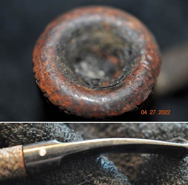 I thought it might be helpful to take you through my process of working on each pipe that we purchase. Jeff has set up a spread sheet to track where the pipe came from, the date of purchase and what we paid for it so that we know what we have invested in the pipe before we even work on it. This takes a lot of the guess work out of the process. This particular pipe was purchased on 09/18/2020 from a seller in Los Angeles, California, USA. I also want you to understand why we take the photos we do. If you have followed for a while then you will see the familiar pattern of the photos we include both in the before and midstream process of working on a pipe. It is not accidental or chance as the photos have been taken to help me make an assessment of the pipe Jeff sees before he starts his clean up work. We do this to record the condition that the pipe was in when received it and to assess what kind of work will need to be done on. When I look at these photos this is what I see.